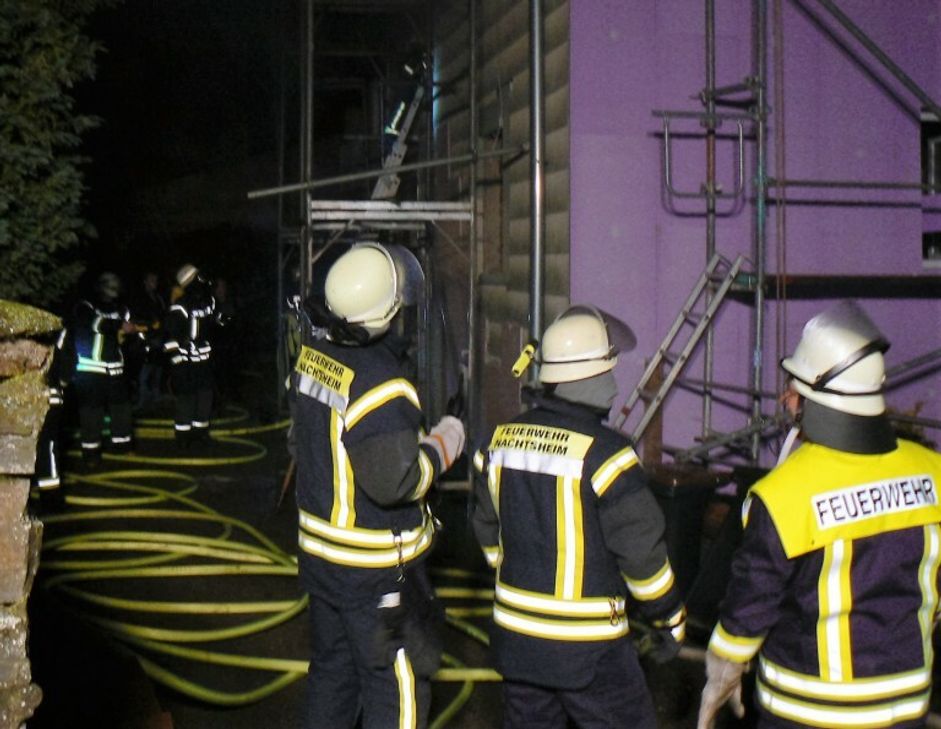Offensichtlich entzündete sich während Renovierungsarbeiten in einem Haus ein Holzhaufen. Bei der Ankunft der ersten Einsatzkräfte befanden sich keine Personen mehr im Gebäude. Unter Atemschutz wurde der Brand abgelöscht, das Brandgut ins Freie transportiert und die Einsatzstelle belüftet. Mit Hilfe einer Wärmebildkamera durchsuchten die Einsatzkräfte die Räumlichkeiten nach weiteren Glutnestern und wurden glücklicherweise nicht fündig. Foto: Freiwillige Feuerwehr Nachtsheim