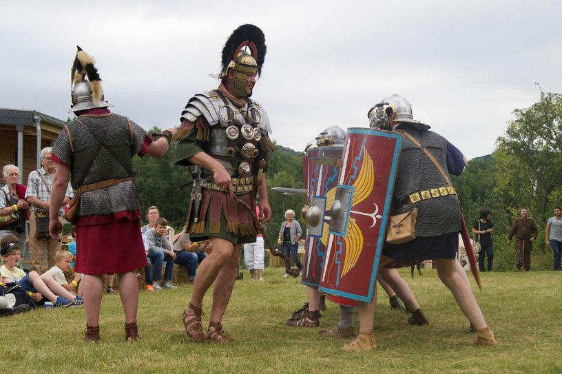 Die Mayener Tourismuschefin Claudia Schick war wunschlos glücklich - ihr Römerfest sprengte in diesem Jahr den Besucher-Rekord. »Schuld« daran war nicht nur das schöne Wetter. Schick und ihre Mitarbeiter hatten wieder einmal ein rundum tolles Programm auf die Beine gestellt: Schaukämpfe und Katapultschießen, kochen nach römischer Art und Stockbrot backen begeisterten nicht nur die kleinen Gäste. Beim gemeinsamen Mosaiken und dem Arbeiten mit Ton war jede Menge Kreativität gefragt. Römisch-romantisch wurde es bei der Hochzeitsvorstellung; eine Modenschau zeigte, dass Kleidung in der Zeit der Römer nicht nur schön, sondern vor allen Dingen zweckmäßig sein musste. Daneben konnten die Gäste, die in diesem Jahr auch zahlreich aus dem benachbarten Ausland angereist waren, an einer Führung durch das Labor für Experimentelle Archäologie teilnehmen. »Der Ansturm war in diesem Jahr so groß, dass eine außerplanmäßige Führung angeschlossen werden musste«, berichtet Initiatorin Claudia Schick. Ein weiteres Highlight waren die Führungen über die Römerwarte am Katzenberg, für die eigens ein Transfer eingerichtet war. Rund 1.000 Gäste besuchten in diesem Jahr das Fest am Mayener Grubenfeld. »Wir sind begeistert und sehen das als Bestätigung unserer Arbeit«, freut sich die Mayener Tourismuschefin und hat nur einen Wunsch für das Römerfest 2017: »dass noch mehr Familien aus Mayen zu uns kommen.« Fotos: Ott