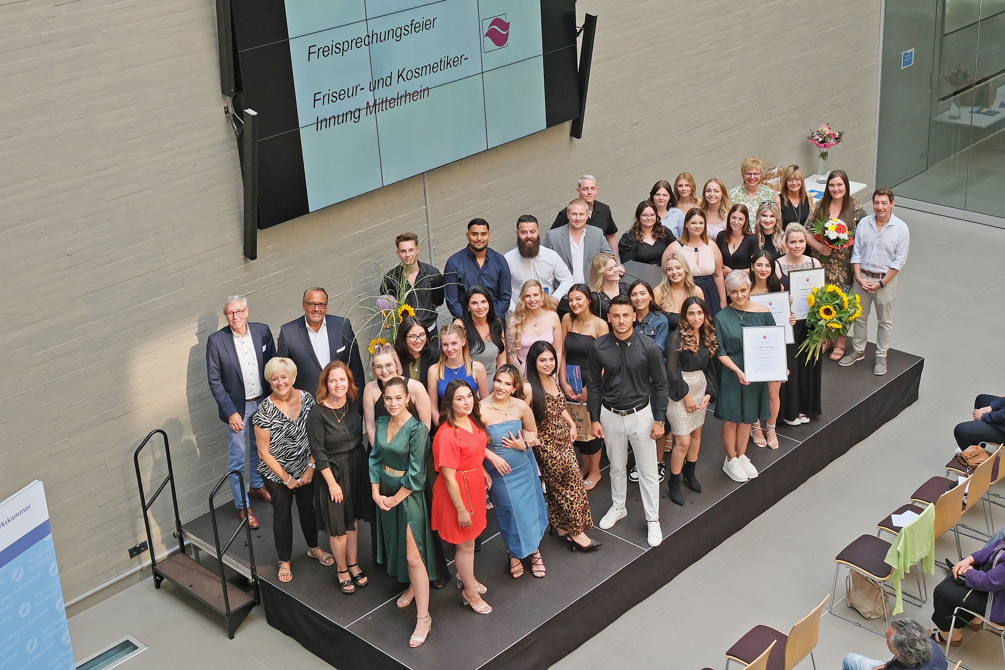 34 Nachwuchsfriseurinnen und -friseure haben ihre Gesellenprüfung bestanden und konnten jetzt von der Friseur-Innung Mittelrhein freigesprochen werden. 26 kommen aus dem Beritt Koblenz und acht aus Mayen. Das Fest fand im vollbesetzten Saal des Zentrums für Ernährung und Gesundheit in Koblenz statt.