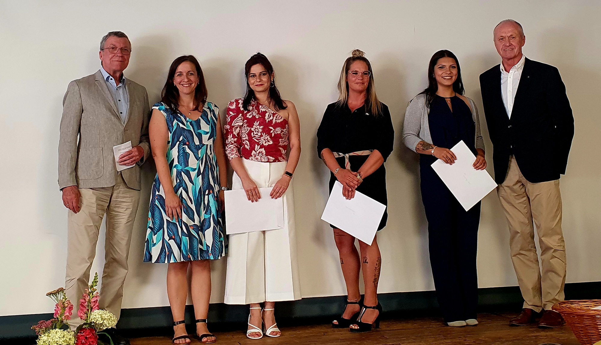 Kurz vor den Sommerferien wurden im Rahmen einer feierliche Abschlussfeier die Absolventinnen und Absolventen der Fachschule für Altenpflegehilfe und der Berufsfachschule Pflege 2023 verabschiedet. In der großartig geschmückten Aula der Berufsbildenden Schule Saarburg durften die Gäste ein vielseitiges Programm erleben. Die kommissarische Schulleiterin der Geschwister-Scholl-Schule Saarburg/Hermeskeil, Katrin Tscherne, die gleichzeitig auch die Pflegeschule leitet, verwies nach der Begrüßung auf die anspruchsvolle Ausbildung im Pflegebereich und die Wichtig- und Dringlichkeit dieser sozialen Ausbildung. Hierbei war besonders der erste, generalistische Ausbildungsdurchgang der Berufsfachschule Pflege im Fokus. Die Klassenlehrerin, Helga Becker-Merl, blickte in ihrer Rede zurück auf das breite Spektrum von Erneuerungen in Form von zuerst unfertigen Lehrplänen, neuen Prüfungsverordnungen, die Unsicher- und Besonderheiten während der Corona-Pandemie sowie eine komplette Umgestaltung des Bisherigen. In den Beiträgen der Absolventinnen, sowohl aus Hermeskeil als auch aus Saarburg, zog sich der Dank an die Lehrkräfte, die umfassende Betreuung von schulischer Seite, die gute Teamfähigkeit sowie die Neugier auf den kommenden Lebensabschnitt und das Bedauern über den Abschied der Schule, wie ein roter Faden durch. „Wende dein Gesicht der Sonne zu, dann fallen die Schatten hinter dich“, war ein empfohlener Ratschlag für die Zukunft. Ein weiterer Höhepunkt war die Anwesenheit des Lions Club Saarburg, vertreten durch den Präsidenten, Franz-Josef Scheuer, sowie Gerhard Fass und Katrin Tscherne. Die Mitglieder des Lions Club betonten, zum sechsten Mal in Folge, den besonderen Stand dieser beruflichen Ausbildung und würdigten drei herausragende Schülerinnen für ihre Leistungen und Engagement mit einem Anerkennungsschreiben und zugefügtem Preisgeld. Umrahmt wurde der offizielle Teil durch kreative Musik- und Gedichtbeiträge. Im Anschluss an die bewegende Zeugnisübergabe lud die Pflegeschule Saarburg zum gemütlichen Beisammensein mit selbsterstelltem Buffet ein.