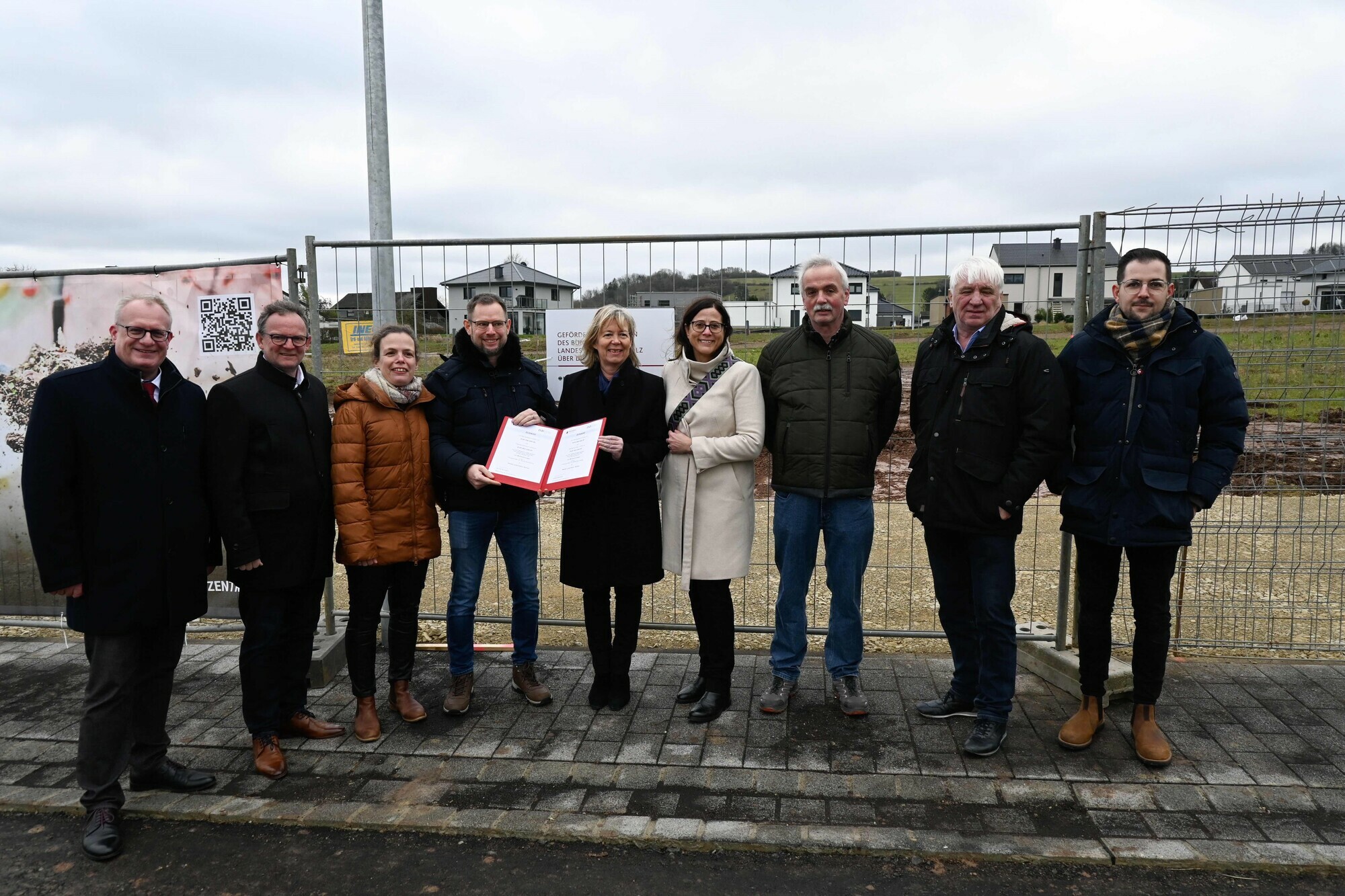 Helen und Felix Seher erhalten hierfür ein Darlehen der Investitions- und Strukturbank Rheinland-Pfalz (ISB) in Höhe von rund 0,9 Millionen Euro und einen Tilgungszuschuss in Höhe von rund 0,4 Millionen Euro. Finanz- und Bauministerin Doris Ahnen und ISBVorstandsmitglied Sandra Baumbach überreichten den Förderbescheid gemeinsam im Beisein des Landrats Stefan Metzdorf, des Verbandsbürgermeisters Michael Holstein und des Ortsbürgermeisters Dieter Bretz an Helen und Felix Seher.