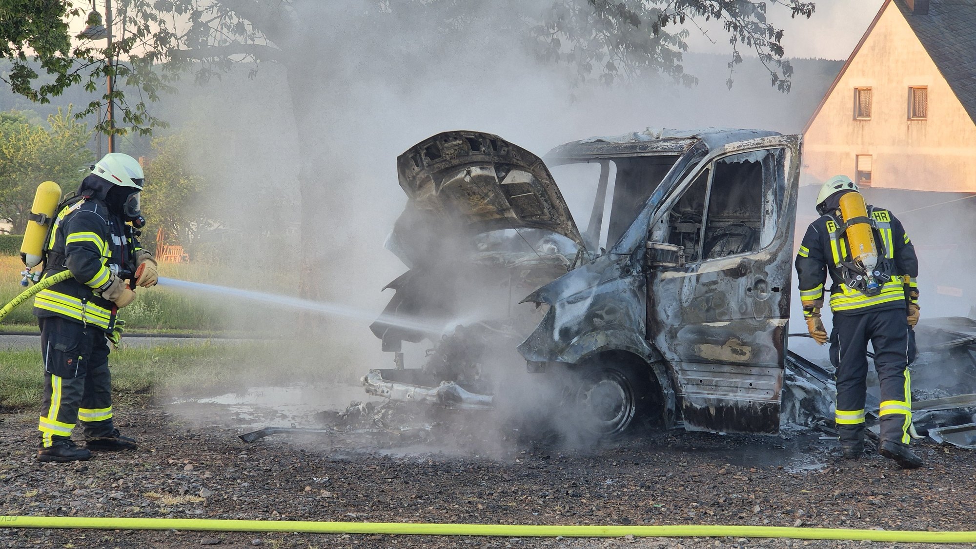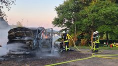 Feuerwehr löscht Transporter, der vollständig ausbrannte