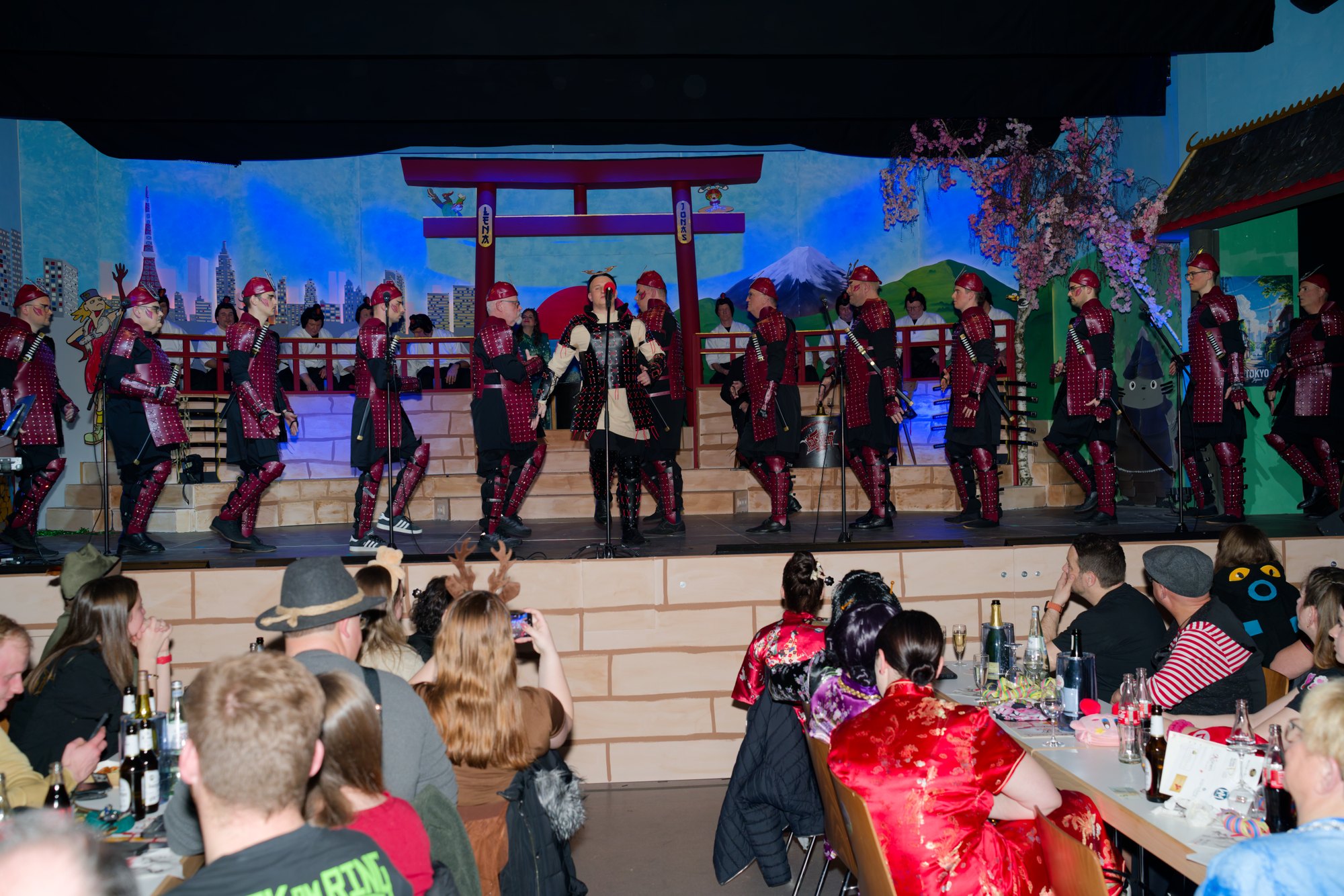 Unter dem Motto „Nintendo, Sushi, Kimono – Irsch Alaaf aus Tokio“ feierte die Karnevalsgesellschaft „Närrisches Saarschiff“ ihre erste stimmungsvolle Kappensitzung in der Irscher Narrhalla. Das Programm dauerte viereinhalb Stunden und begann mit einer Super-Mario-Nummer. Sitzungspräsidenten Helmut Steuer und Fabienne Müller begrüßten das bunt kostümierte Publikum und führten durch den Abend. Die Hofgarde und der närrische Elferrat begleiteten als japanische Schwertkämpfer das Irscher Prinzenpaar Prinz Jonas I. „Samurai der Bambusbühne“ und Prinzessin Lena I. „Blüte des Lachens“ durch die Narrhalla.