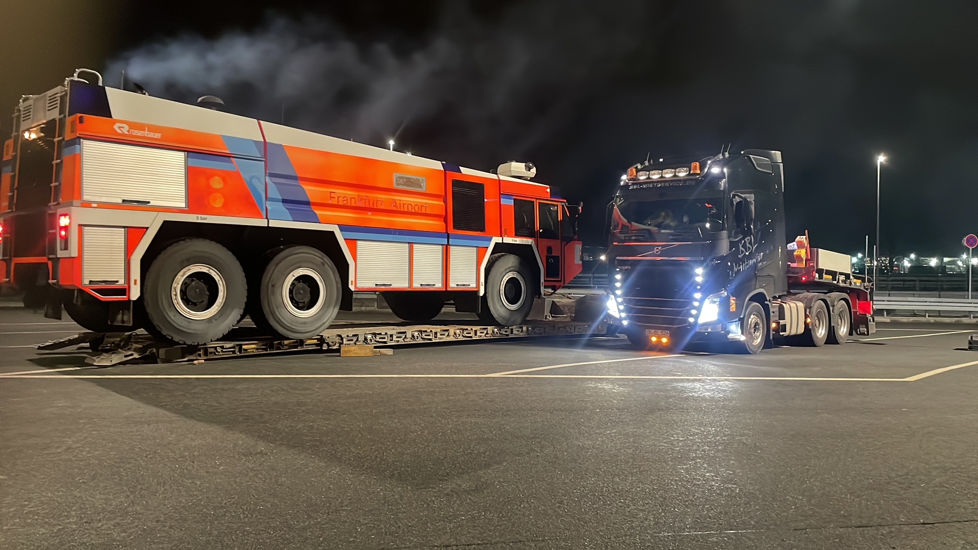Sechs Monate hat es gedauert, bis alles geklärt war. In der ersten Hälfte des Dezembers konnte dann endlich der größte Neuzugang des Rheinland-Pfälzischen Feuerwehrmuseums Hermeskeil bei der Flughafenfeuerwehr Frankfurt am Main abgeholt werden. Auf eigener Achse konnte das GFLF 60/80 - 8 (Großflugfeldlöschfahrzeug), Simba 6x6 der Firma Rosenbauer nicht so einfach überführt werden, ein Schwertransport war nötig, da das Fahrzeug eine Breite von 3,10 m hat und somit 60 cm breiter ist als ein üblicher Lkw. "Doch jetzt haben wir endlich alle Formalitäten erledigt und auch die Finanzierung des Schwertransportes durch Eigenmittel des Vereins und durch Spendengelder sichergestellt", sagt Max Schmitt, Museumsleiter des Hermeskeiler Feuerwehrmuseums, am frühen Morgen, bevor er sich mit den beiden anderen Vereinsmitgliedern Bernd Becker und Hans-Peter Pitzer auf den Weg zum Frankfurter Flughafen machte. "Der Simba 6x6 wird jetzt im Winter noch etwas aufgearbeitet, damit er ab Frühjahr 2024 unsere Ausstellung bereichern kann und hoffentlich auch zahlreiche Besucher anlockt", wünscht sich Museumsleiter Schmitt.