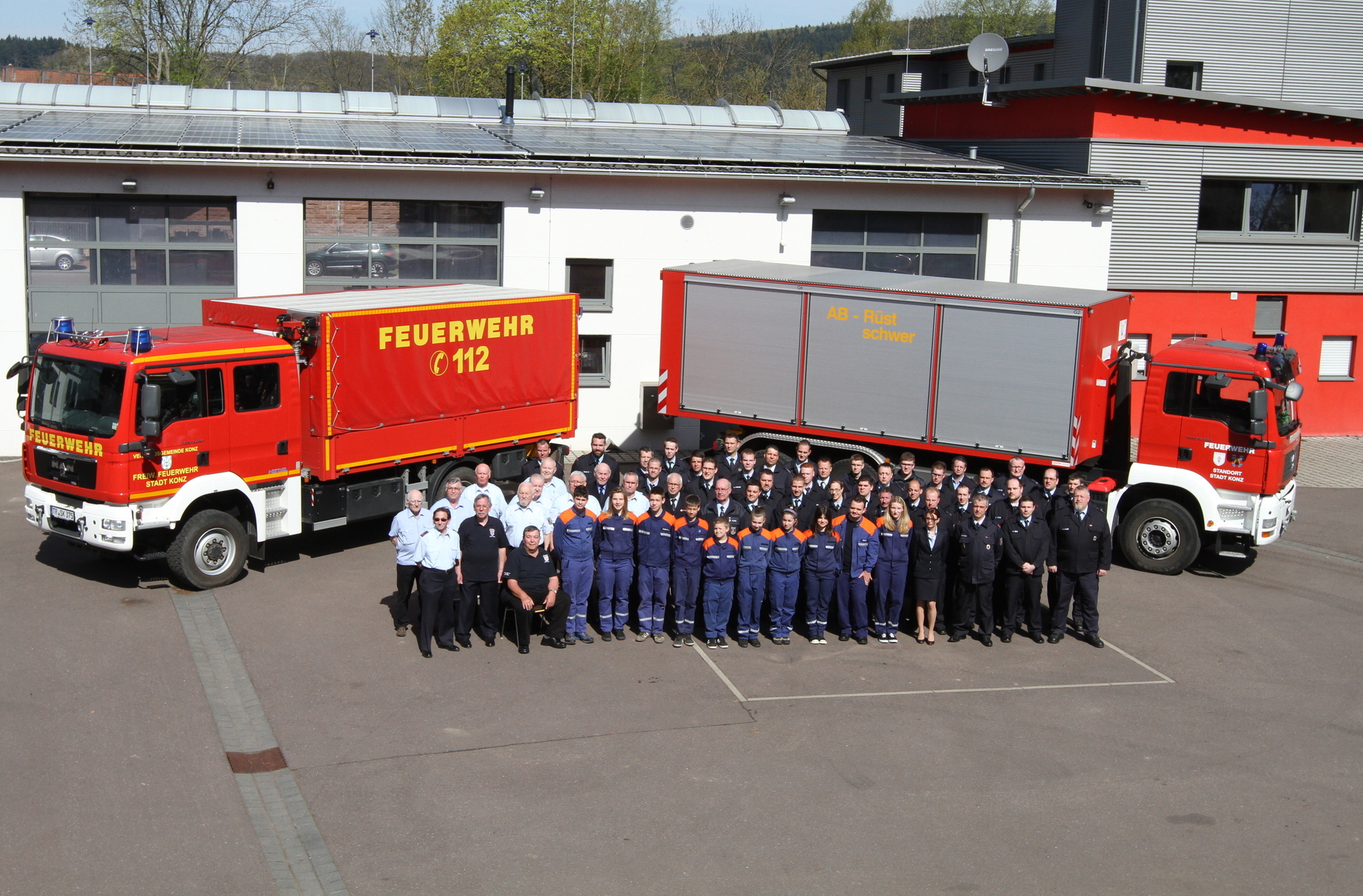 Die 1925 gegründete Feuerwehr Konz feiert in zwei Jahren 100-jähriges Bestehen. Herzstück der Feuerwache ist das karmesinfarbene Gerätehaus, welches vor einigen Jahren von Grund auf saniert wurde. Die Feuerwehr in der Granastrasse bildet die Stützpunktfeuerwehr der Verbandsgemeinde. Durch die enge Zusammenarbeit mit den weiteren 19 Wehren in der Verbandsgemeinde können die gesetzlichen Anforderungen erfüllt werden. Die Einsatzzentrale im Gebäude der FW Konz wird mit Kräften aus den umliegenden Feuerwehren der Verbandsgemeinde besetzt. Sobald ein Notruf unter der Rufnummer 112 bei der Rettungsleitstelle in Trier eingeht, wird die FW Konz zum Unglücksort geleitet oder als Unterstützung für umliegende Gemeinden angefordert.