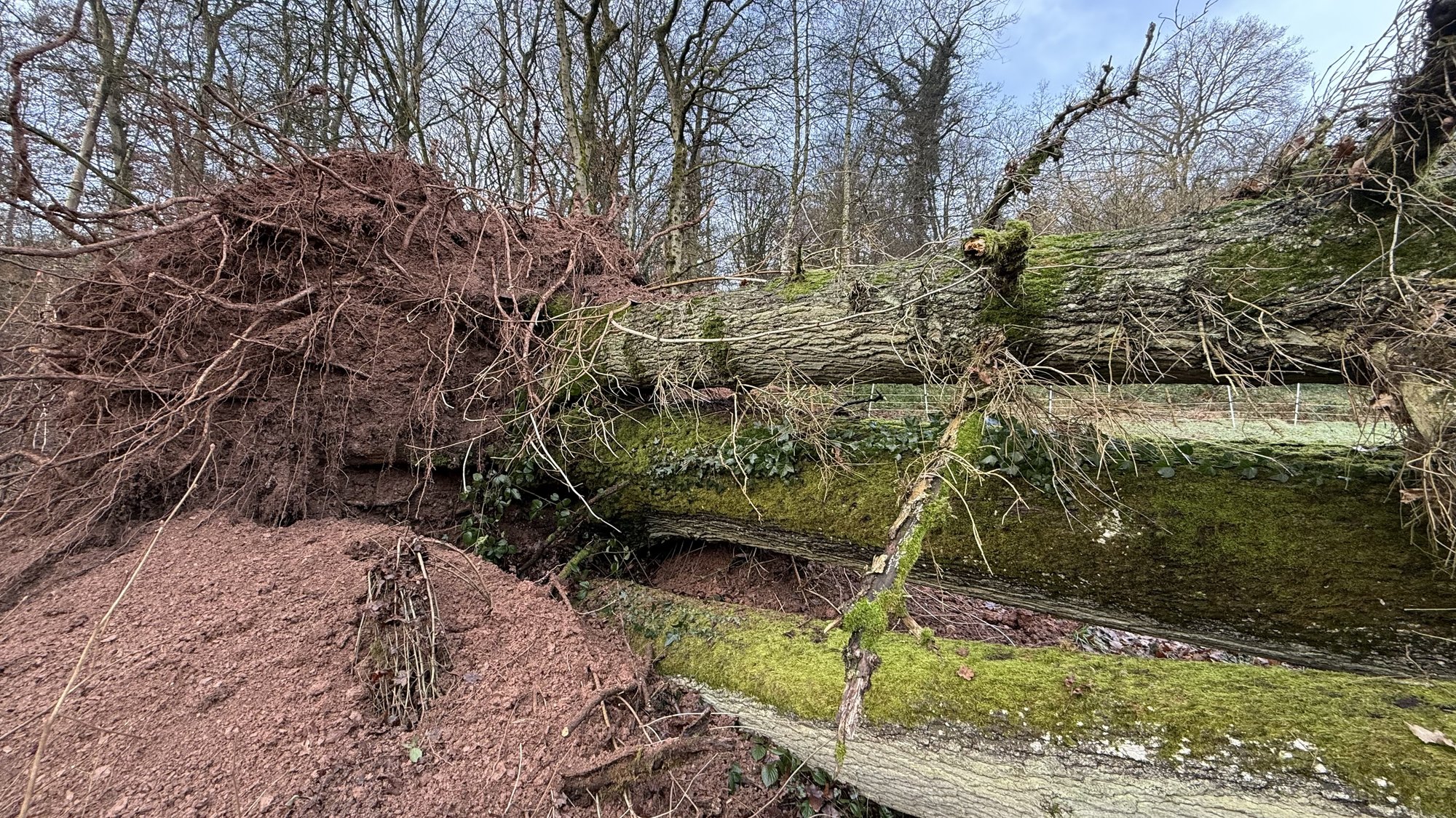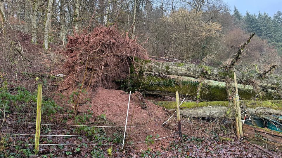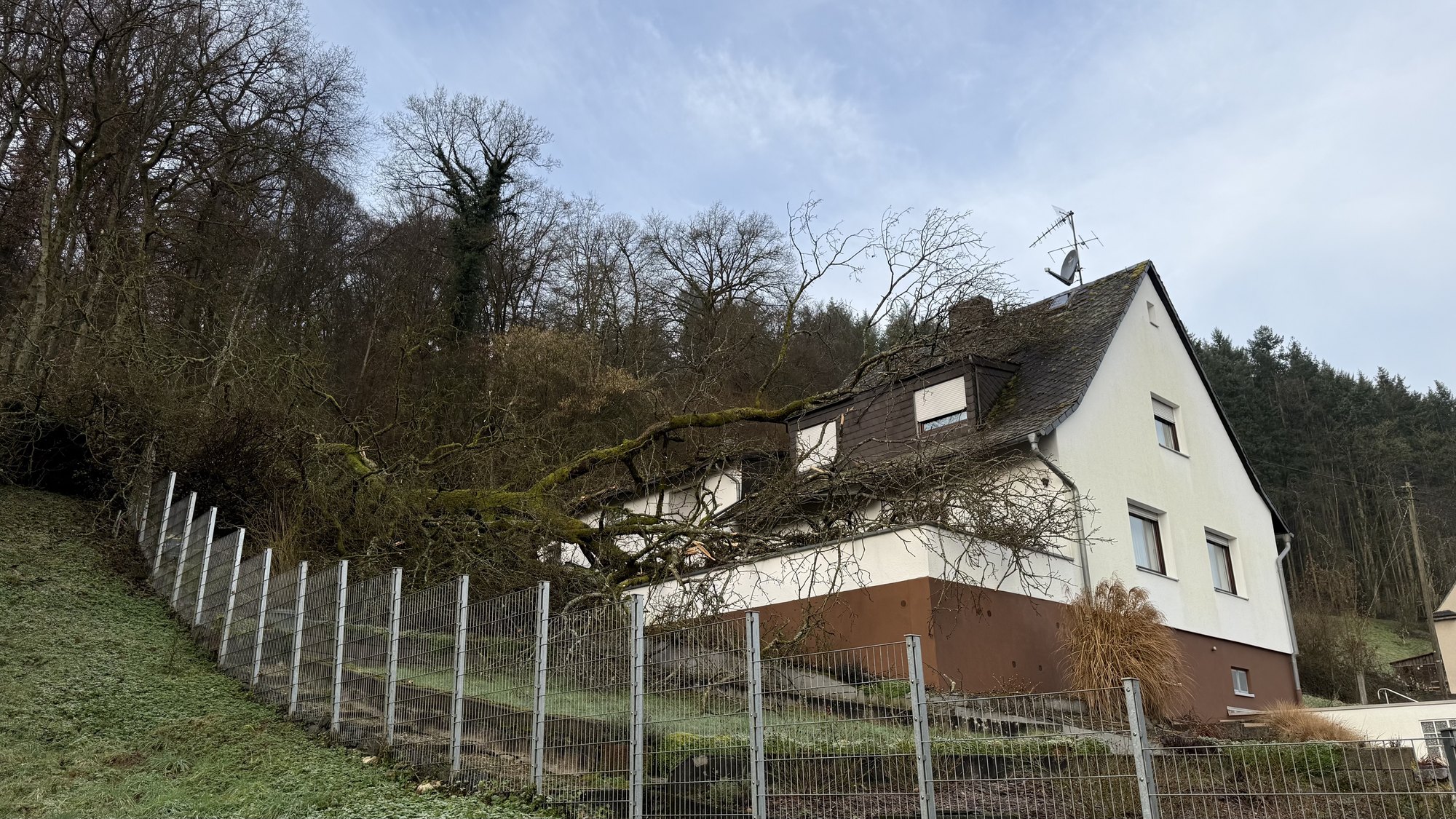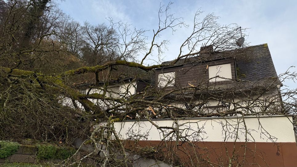 Drei massive Eichen stürzen auf Wohnhaus in Trier-Ruwer