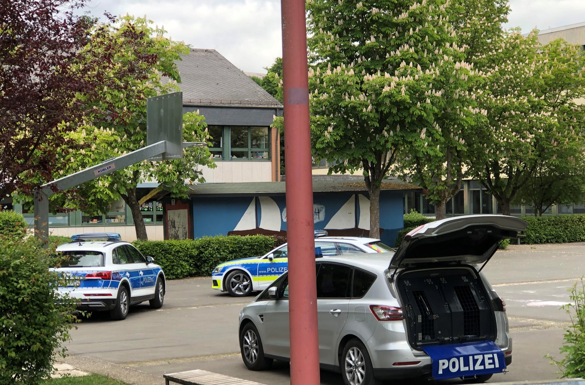 Heute Morgen, 23. Mai, gingen bei Schulen in Gillenfeld und in Aach identische Droh-E-Mails ein. In beiden Fällen informierten die Schulleiter umgehend die Polizei, die die Ermittlungen aufgenommen hat. Der Schulbetrieb findet nicht statt. Polizeikräfte durchsuchen mit Unterstützung eines Diensthundes die Schulgebäude.