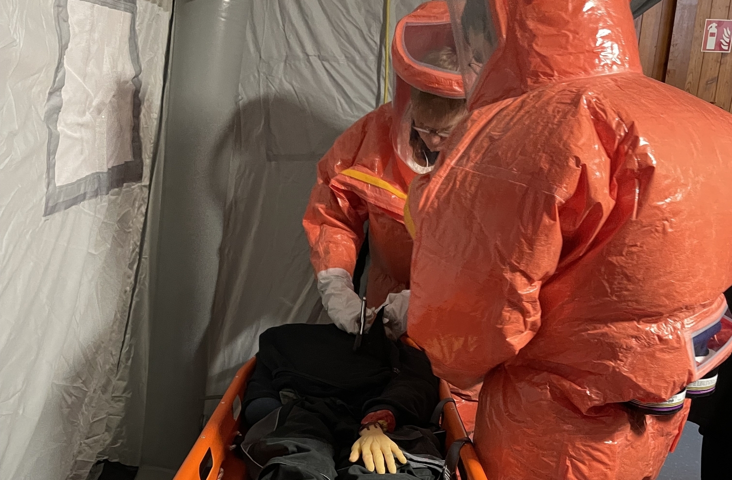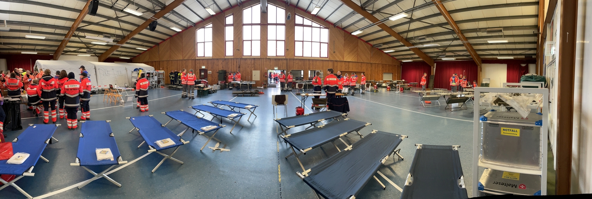 In der angrenzenden Halle wurde eine Dekonta-minationsstraße (Dekon-Einheit) mit Zelten und Duschen des Gefahrstoffzuges Trier-Saarburg sowie ein Behandlungsplatz der Hilfsorganisationen - ein sogenannter BHP50 - aufgebaut. Dort wur-den die Verletzten zunächst aufgenommen, die Gefahrstoffe in der Dekon-Einheit entfernt und die Menschen anschließend von medizinischem Personal weiter behandelt. Für einen reibungslosen Ablauf, war eine enge Zusammenarbeit zwischen den verschiedenen Einheiten erforderlich.Der Brand- und Katastrophenschutzinspekteur des Kreises Thorsten Petry hatte die Übung angeregt, um Abläufe und Kommunikation zu testen. "Uns war von Anfang an klar, dass nicht alles rund lau-fen wird. Wir haben alle Einheiten gebeten, die Dinge zu dokumentieren, die ihnen aufgefallen sind. Nach der Auswertung der Rückmeldungen arbeiten wir dann gemeinsam an Verbesserungen", so Petry.