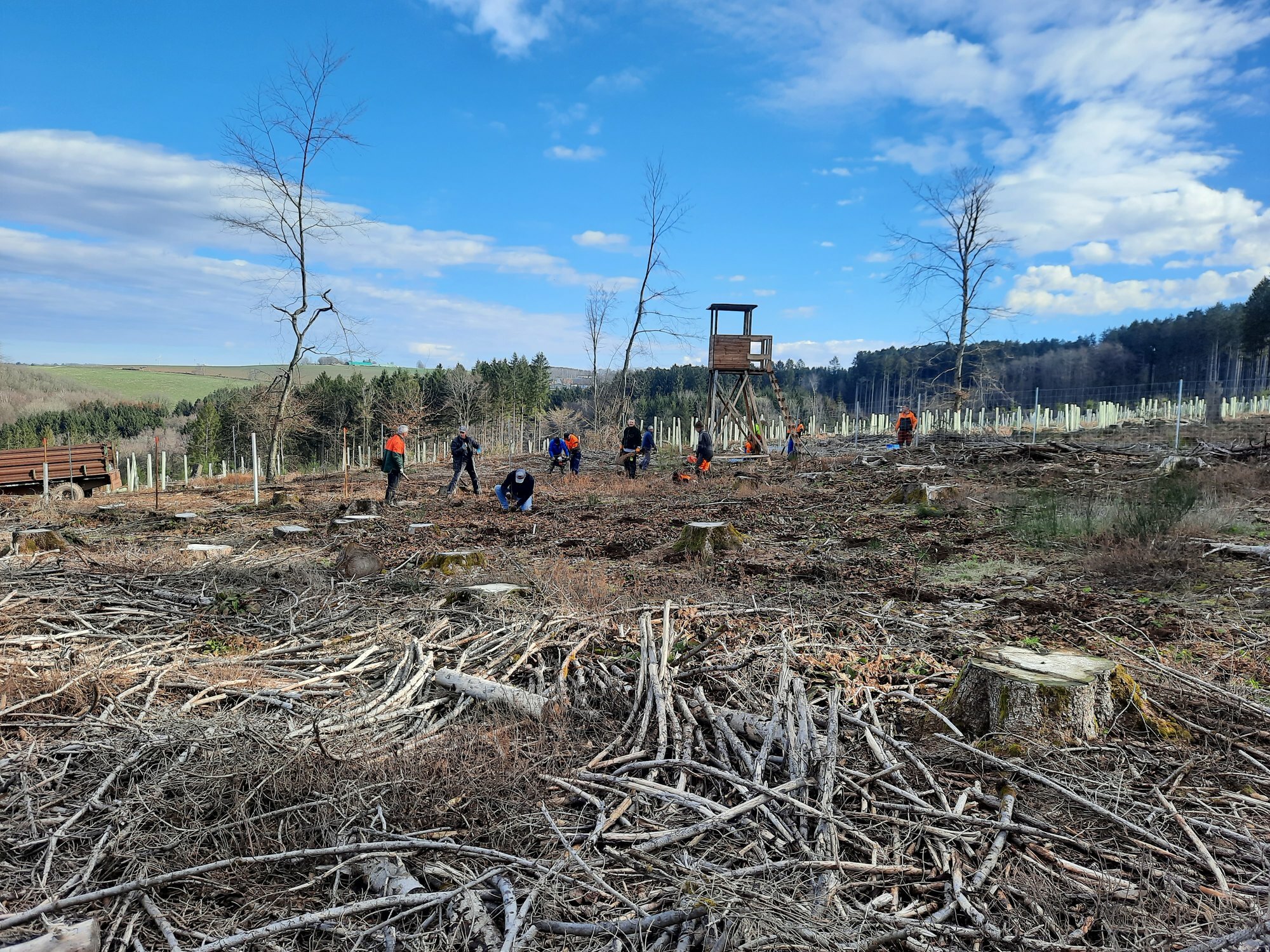 Aktuelle heimische Hauptbaumarten wie die Fichte sind dieses Extremwetter nicht gewohnt und sind dem Borkenkäfer bereits in großer Zahl zum Opfer gefallen. Große Kahlflächen in den Wäldern um die Irscher Spein und im Neunhäuser Wald sind die Folge davon. Die Irscher Gehöferschaft steuert diesem Trend bereits seit Jahren entgegen und treibt einen aktiven Waldumbau weiter voran. Andere, zum Teil neue, resistentere Baumarten werden nun seit einigen Jahren in großer Zahl gepflanzt. Allein im 1. Quartal 2024 wurden 9.000 Pflanzen der Baumarten Roteiche, Esskastanie, Douglasie, Hybridlärche, Spitzahorn und Atlaszeder in den Boden gebracht. Seit 2019 wurden somit in der Gehöferschaft 21.000 Bäume gepflanzt, u. a. auch die Hybridnuss.