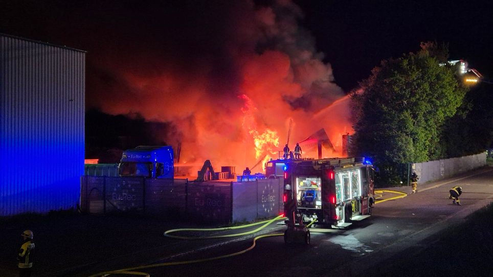 Großbrand in Hermeskeil: Lagerhalle in Flammen - 150 Einsatzkräfte im Einsatz
