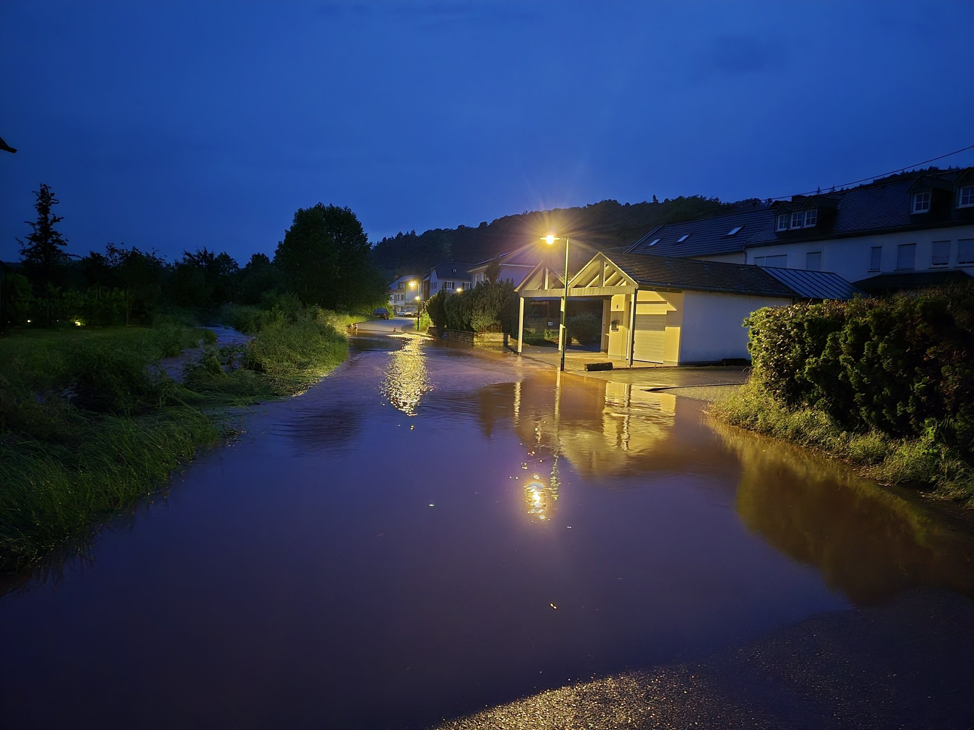 Auch die VG- Bürgermeisterin Christiane Horsch machte sich ein Bild von der Lage vor Ort und dankte allen Einsatzkräften. Im Einsatz waren die Feuerwehreinsatzzentrale (FEZ), Führungsstaffel und Wehrleitung VG Schweich. Der Brand- und Katastrophenschutzinspekteur (BKI) und sein Stellvertreter. Die Feuerwehren aus Föhren, Schweich, Bekond, Ensch und Naurath/ Wald. Die Malteser Föhren, das THW aus Trier und die Drohneneinheit des Landkreises (Feuerwehr Schillingen). Während dem Einsatz in Föhren gab es auch zwei Orte weiter in Salmtal eine Überflutung. In der Straße "Zum Angeslsteg" läuft parallel verlaufend der "Bendersbach". Dieser tritt am Abend auch über Ufer und überflutete die Straße Richtung Dodenburg. Der LBM rückte aus und sperrte die Straße für den Verkehr ab.