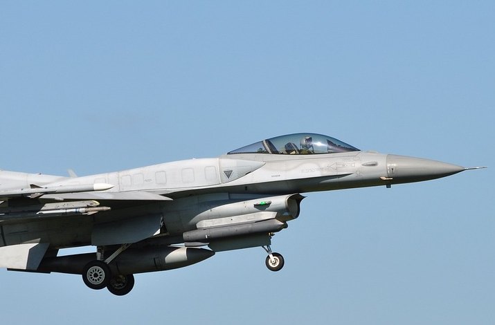 In Not geratender F16 Fighter wirft Treibstofftanks ab