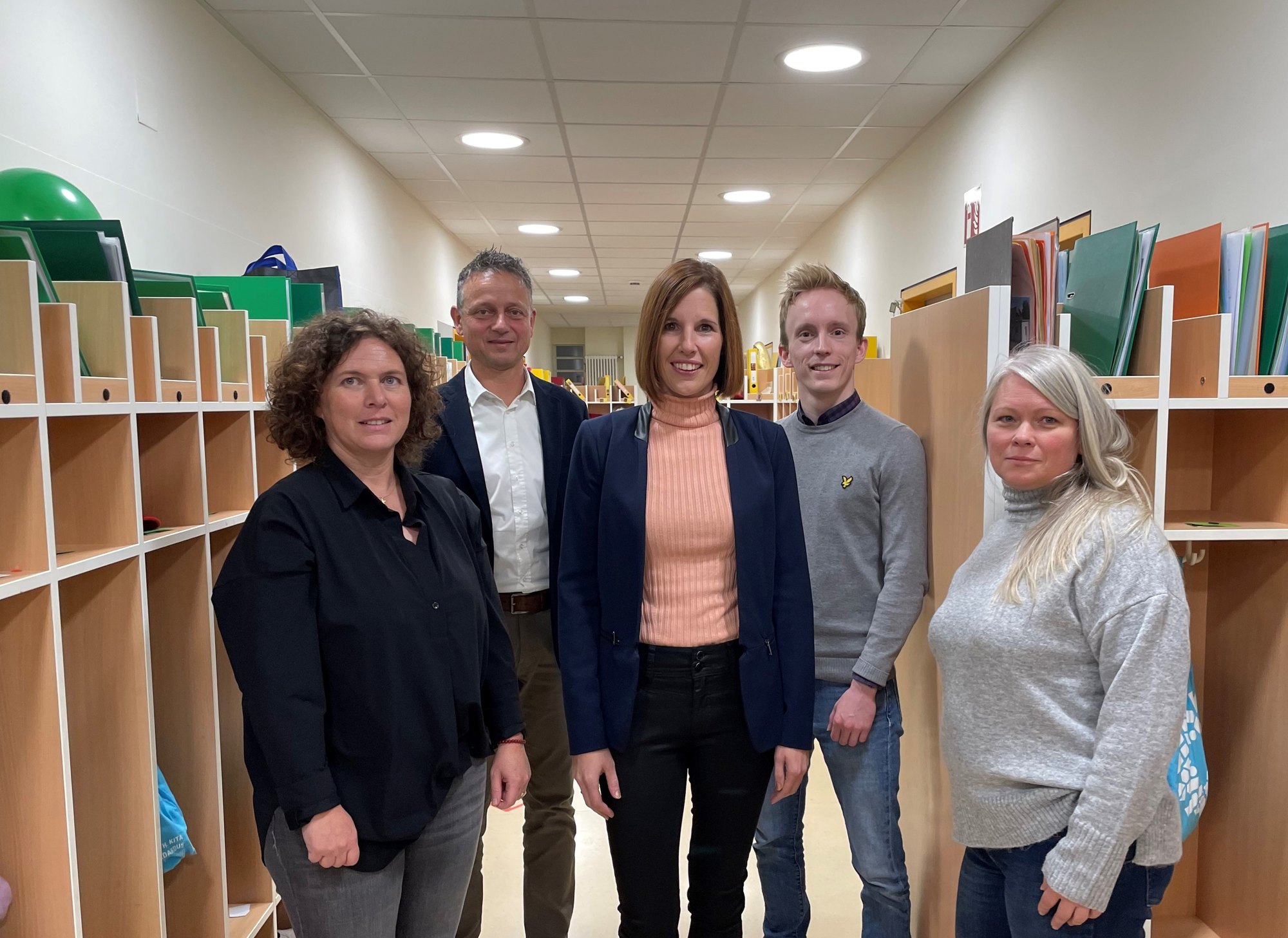 Bild (v. l.): Bei einem Rundgang durch die Katholische KiTa St. Medardus in Mehring begutachteten Iris Herber-Cordier, Marco Felten, Jennifer Schlag, Henrik Lewna sowie Stefanie Borchmeyer die neue LED-Beleuchtung.