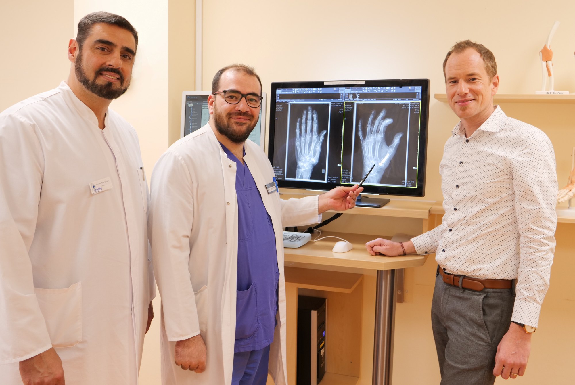 Mohamad Alchhabi, Leitender Oberarzt der Orthopädie, Unfall- und Handchirurgie am Kreiskrankenhaus Saarburg, bietet nun eine besondere Operationsmethode für Patient*innen mit solchen Problemen an, wenn die konservative medizinische Therapie nicht zum Erfolg führt. Bei dem chirurgischen Eingriff wird das Daumengelenk durch ein künstliches Gelenk (ähnlich einer Hüftprothese) ersetzt. „Mein geschätzter Kollege Herr Alchhabi ist ein exzellenter Unfallchirurg, Orthopäde und Handchirurg. Die Operationsmethode, das beschädigte Daumengelenk durch eine Prothese zu ersetzen, ist in der Region einzigartig. Die Funktion des Daumens kann so wiederhergestellt und Schmerzen beseitigt werden,“ erklärt Dr. Fadie El Odeh, Ärztlicher Direktor.