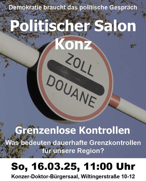 Konz. Die Debatte über Migration hat in den vergangenen Monaten die innenpolitische Diskussion bestimmt – und auch der zurückliegende Wahlkampf wurde maßgeblich davon geprägt. Während nun Koalitionsverhandlungen zur Regierungsbildung laufen, bleibt klar: Strengere Maßnahmen in der Migrationspolitik sind zu erwarten. Dabei folgt die Politik einer bekannten Dynamik: Nach jedem sicherheitsrelevanten Vorfall werden neue Forderungen nach schärferen Regeln laut, und kaum eine Partei kann sich dem entziehen. Schon jetzt ist absehbar, dass auch im Bereich der Grenzkontrollen deutliche Verschärfungen kommen könnten. Welche Auswirkungen haben dauerhafte Kontrollen? Gerade für die Grenzregion Konz stellt sich die Frage, was dies konkret bedeuten würde. Berufspendler nach Luxemburg könnten mit längeren Wartezeiten und erhöhter bürokratischer Belastung konfrontiert werden. Unternehmen, Handwerksbetriebe und Händler, die beidseits der Grenze tätig sind, müssten sich auf neue Hürden einstellen. Und auch das alltägliche Leben könnte spürbar beeinträchtigt werden: Bleiben grenzübergreifende Feste wie das gemeinsame Weinfest von Nittel und Machtum weiterhin unbeschwert möglich? Diskussion im Politischen Salon Konz am 16. März Diesen und weiteren Fragen widmet sich der Politische Salon Konz in seiner nächsten Veranstaltung am 16. März 2025. Unter dem Titel „Grenzenlose Kontrollen? Was bedeuten dauerhafte Grenzkontrollen für unsere Region?“ werden Expertinnen und Experten sowie Bürgerinnen und Bürger über die möglichen Konsequenzen diskutieren. Die Veranstaltung findet im Konzer-Doktor-Bürgersaal in der Wiltingerstraße statt und beginnt um 11 Uhr. Im Anschluss besteht die Möglichkeit, die Gespräche in entspannter Atmosphäre bei einem Glas Wein, Saft oder Sprudel fortzusetzen.