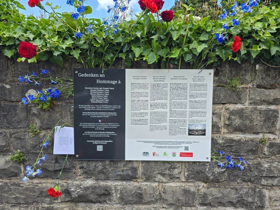 Schülerinnen und Schüler des Gymnasiums Saarburg setzten sich im Rahmen eines Geschichtsprojekts intensiv mit den Einzelschicksalen der Opfer auseinander. Unter der Leitung ihres Lehrers Björn Juchem sichteten sie Archivakten, entwickelten Unterrichtsmaterialien und bereiteten eine öffentliche Dokumentation vor. Selbst in den Sommerferien führten sie Recherchen und Interviews durch und organisierten die Enthüllung einer neuen Gedenktafel, die mit Unterstützung der Stiftung der Sparkasse Trier realisiert werden konnte. Weitere Schülerinnen und Schüler gestalteten mit ihrer Lehrerin Erdmute Röder die musikalische Begleitung der Veranstaltung, übersetzten Reden ins Französische und trugen Biografien der Opfer vor. Ein kleiner Chor sang den „Chant des Partisans“, das wohl bekannteste Lied der Résistance.