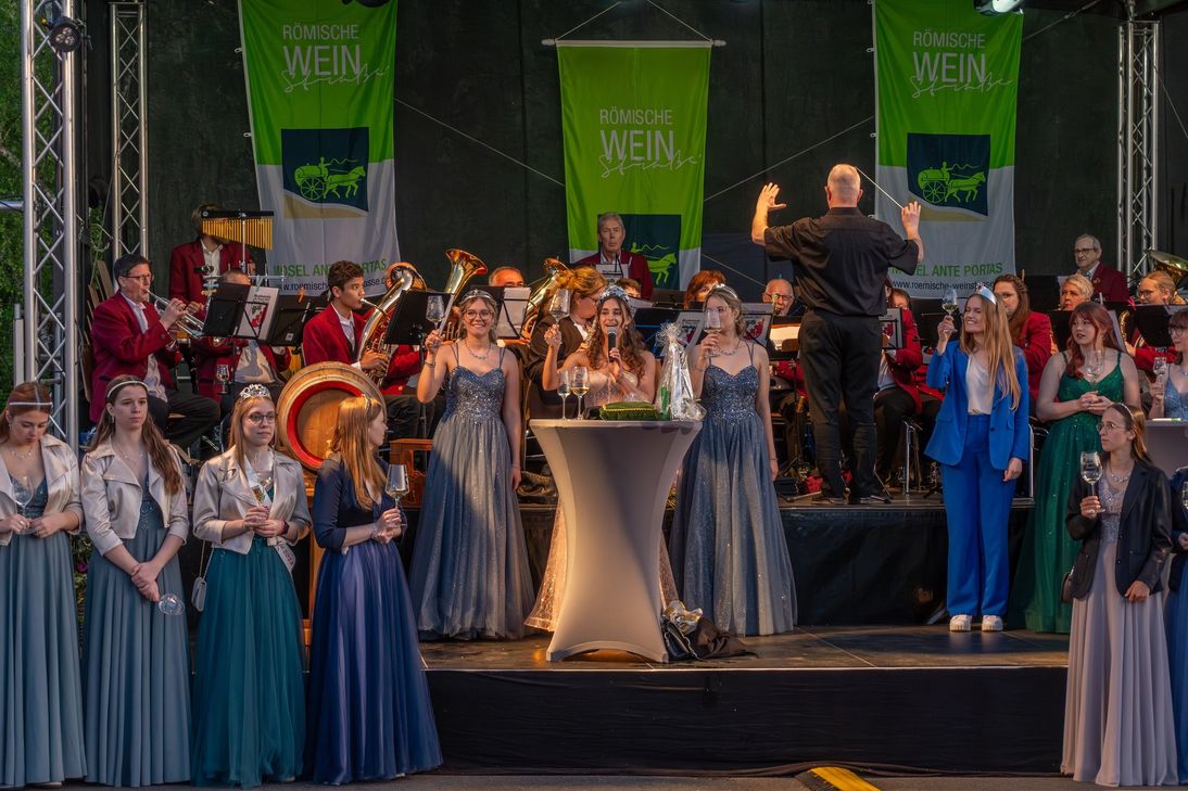 19.30 Uhr: Krönung der Weinkönigin der Römischen Weinstraße Hannah I. und offizielle Eröffnung mit Fassanstich durch den Schirmherrn Reinhard Müller, Geschäftsführer des Industrieparks Region Trier