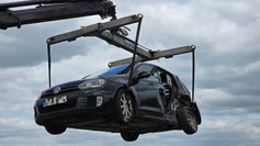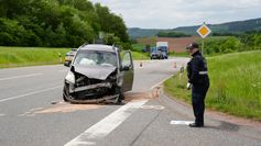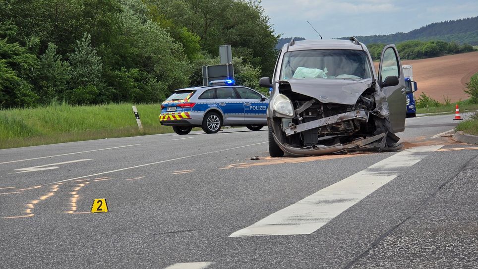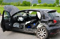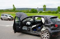 Eine Person musste aus dem VW Golf von der Feuerwehr mit Hilfe technischer Rettung und schwerem Gerät befreit werden.