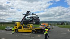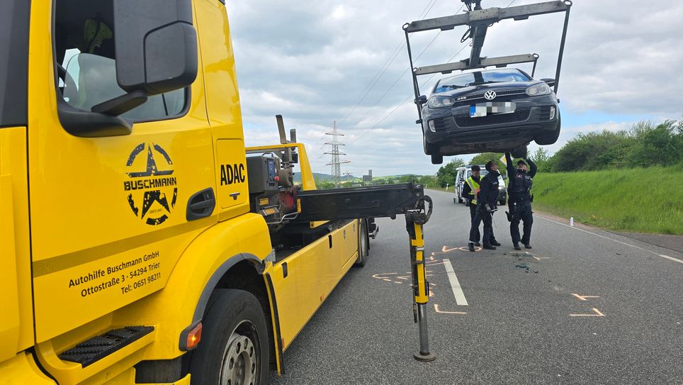Nach dem schweren Verkehrsunfall in den frühen Mittagsstunden laufen die Bergungsarbeiten derzeit auf Hochtouren. Die L 141 zwischen Föhren und Schweich soll nach Einschätzung des vor Ort tätigen Bergungsunternehmens voraussichtlich um 16:30 Uhr wieder freigegeben werden. Mit der Bergung der verunfallten Fahrzeuge wurde das Abschleppunternehmen Buschmann beauftragt. Die Fahrzeuge wurden mithilfe eines Krans verladen.