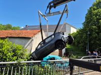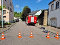 Derzeit ist die Ortsdurchfahrt für den Verkehr voll gesperrt, da man in Wincheringen das Winzerfest "Kellertage" feiert. So sind die Täter mit einem hochmotorisierten BMW die kleine Straße "Am Markt" herunter gefahren. An der Ecke "Bahnhofstraße" Am Markt" hat der Fahrer dann die Kontrolle verloren und ist in den "Mühlenbach" seitlich gestürzt. Die Polizei teilt in der Folge mit, dass mindestens ein Täter sich verletzt haben muss, da man Blutspuren dort fand. Nach diesem spektakulären Unfall flüchteten die Täter zu Fuß von der Unfallörtlichkeit. Starke Polizeikräfte wurden nach Wincheringen geordert. Mit einer großen Anzahl an Polizeifahrzeugen von Dienststellen aus der Region Trier und der Bundespolizei, aber auch in Zivilfahrzeugen wurde der Ort abgesucht.