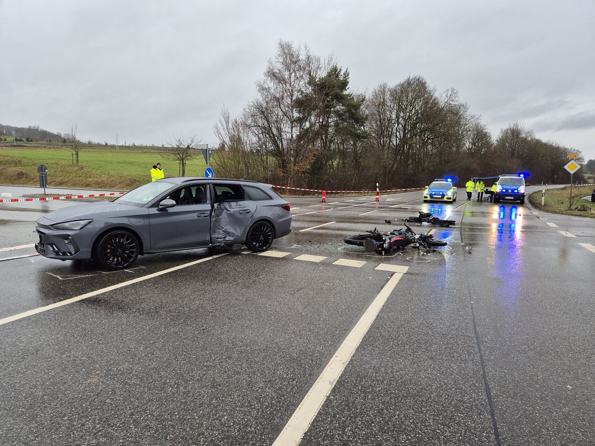 Für die Dauer der Unfallaufnahme musste die B268 vollständig für den Verkehr gesperrt werden.