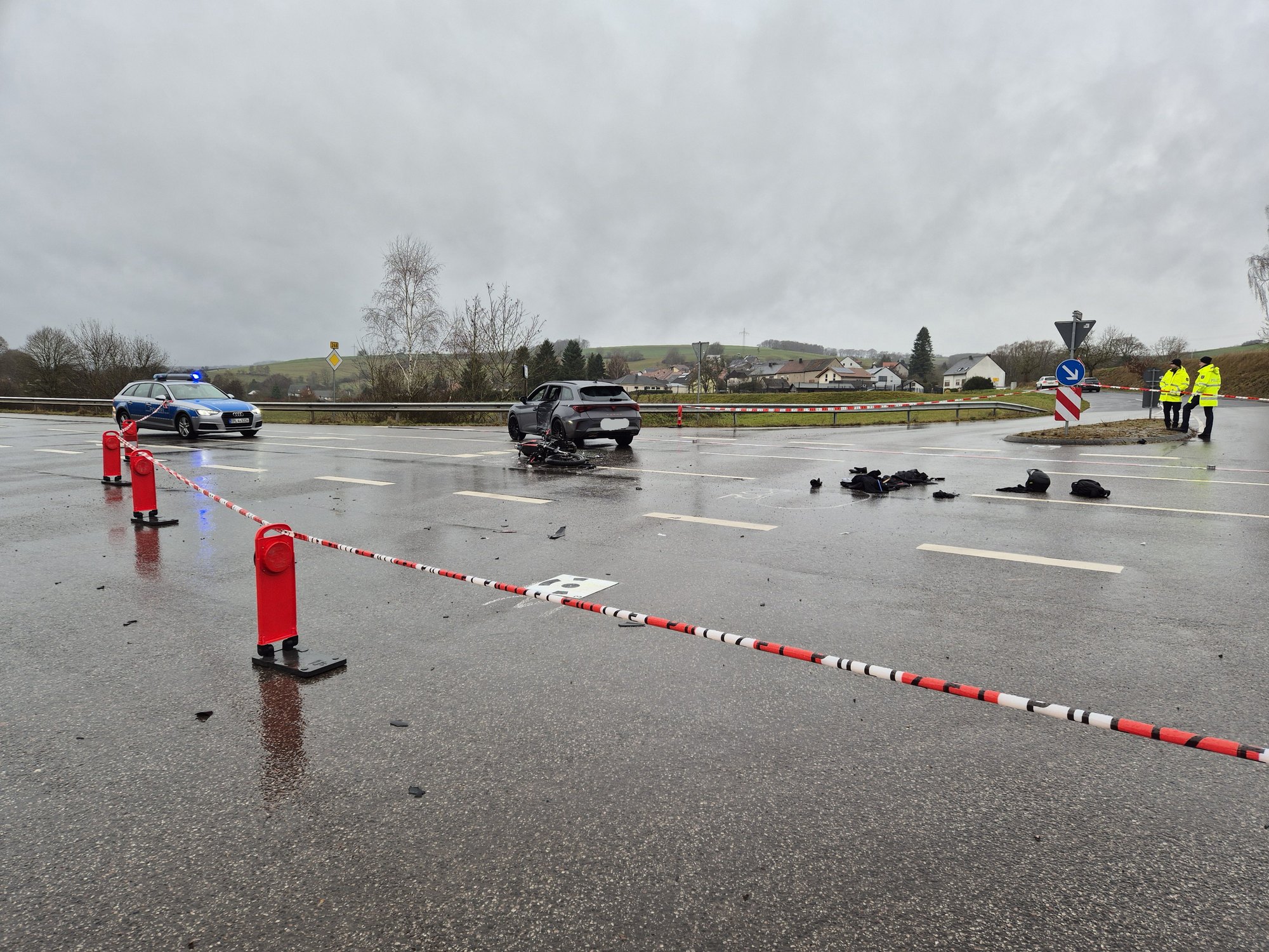 Zur Klärung des genauen Unfallhergangs ist das Unfallaufnahmeteam der Polizei Trier im Einsatz, das unter anderem eine Drohne zur späteren Rekonstruktion nutzt. Die Arbeiten dauern derzeit noch an (Stand: 10:30 Uhr).