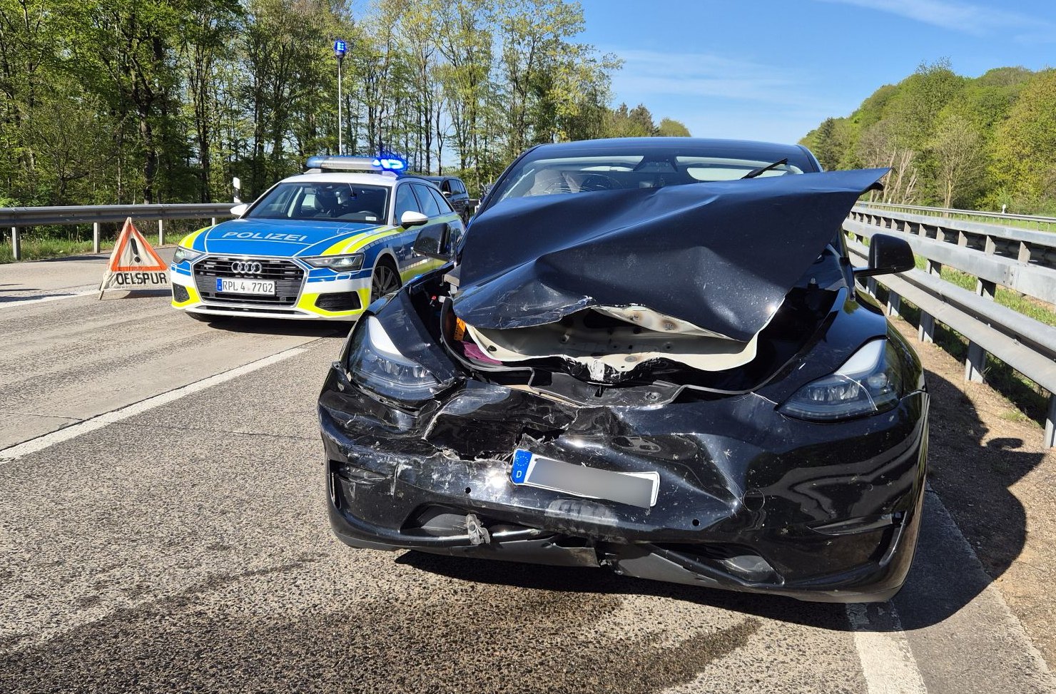 Am Sonntag, 27. , kam es gegen 16.45 Uhr auf der A1 zwischen den Anschlussstellen Föhren und Schweich in Fahrtrichtung Saarbrücken zu einem Verkehrsunfall. Nach einem Spurwechsel kollidierten ein Opel und ein Tesla miteinander. Der Tesla kam im Bereich der Mittelschutzplanke zum Stehen, der Opel blieb auf der rechten Fahrspur liegen. Beide Fahrzeuge waren nicht mehr fahrbereit und mussten von Abschleppdiensten entfernt werden.