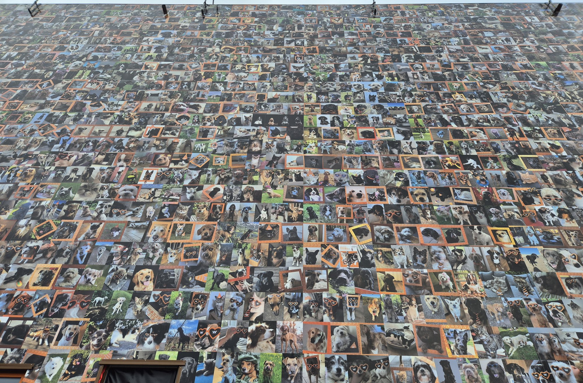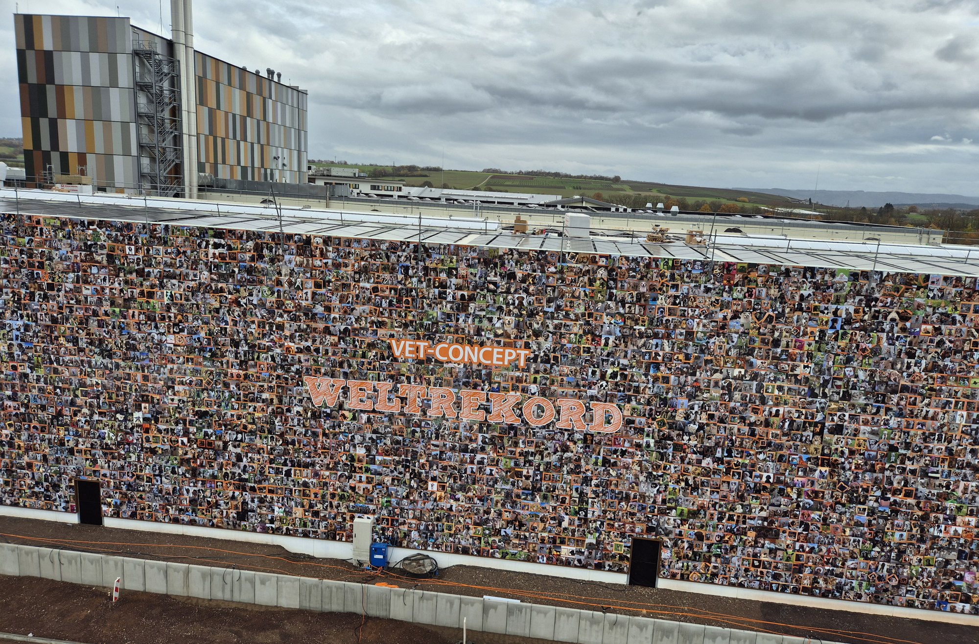 Für die rund 1.000 Quadratmeter große Collage wurden laut Geschäftsführer Thorsten Herz rund 8.400 Fotos von Hunden und Katzen eingereicht. Kunden hatten ihre Aufnahmen im Vorfeld eingesendet, um Teil des großflächigen Kunstwerks zu werden. Die Folierung der Hallenwand wurde von einem spezialisierten Regionalunternehmen laut Vet-Concept innerhalb von 22 Tagen realisiert.
