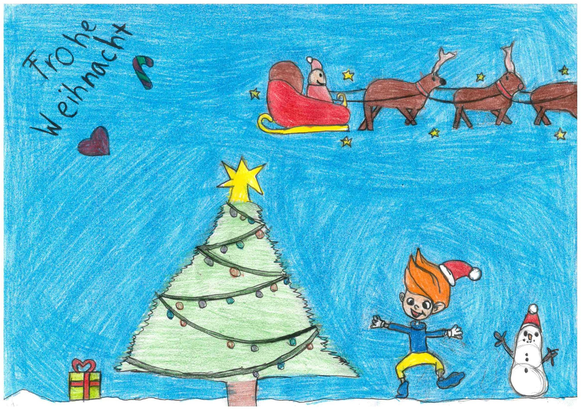 Der Weihnachtsmann schwebt mit seinem Schlitten und den Rentieren durch den Winterhimmel und am Boden freut sich Kodo, das Maskottchen der Konzer-Doktor-Bürgerstiftung, mit einem Schneemann über einen bunt geschmückten Weihnachtsbaum. Dieses Motiv ziert die diesjährige Weihnachtkarte des Bürgermeisters der Verbandsgemeinde Konz. Gestaltet wurde es von Feenja Witt, einer Viertklässlerin der Grundschule Tawern. „Das Motiv bringt die Freude der Weihnachtszeit wunderbar zum Ausdruck“, so Bürgermeister Guido Wacht.