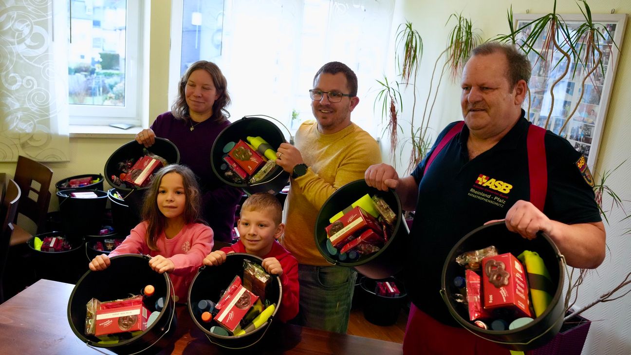 Für viele Anwesende sorgte zudem ein besonderer Moment für ein Lächeln: Auch die beiden kleinen Kinder von Florian Blaes halfen bei der Packaktion mit. Die Zwillinge packten nicht nur fleißig mit an, sondern kündigten an, für jeden Eimer noch einen selbst gebastelten und bemalten kleinen Weihnachtsbaum beizulegen – eine persönliche Geste, die den Geschenken eine zusätzliche emotionale Note verleiht.