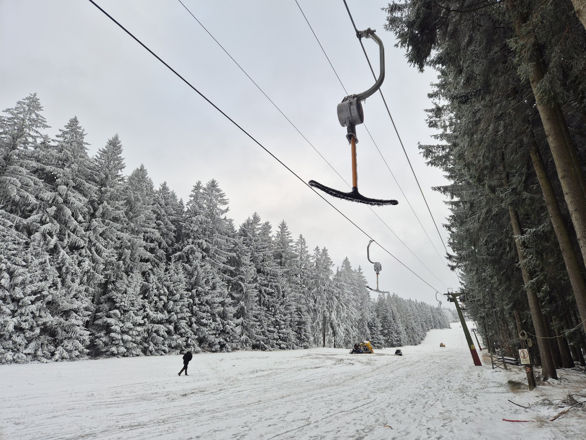 Wie bereits am Vortag angekündigt, blieb der Skilift auch am Sonntag außer Betrieb. Dennoch wagten sich einige Wintersportler zu Fuß den steilen Anstieg hinauf, um anschließend mit Snowboard oder Skiern ins Tal zu fahren. Die Schneekanonen liefen weiterhin auf Hochtouren. Nun richtet sich der Blick der Verantwortlichen auf die kommenden Tage: Bleibt es kalt, fällt weiterer Schnee – oder bringt eine Wetteränderung mildere Temperaturen, die den Betreibern einen Strich durch die Rechnung machen könnten?