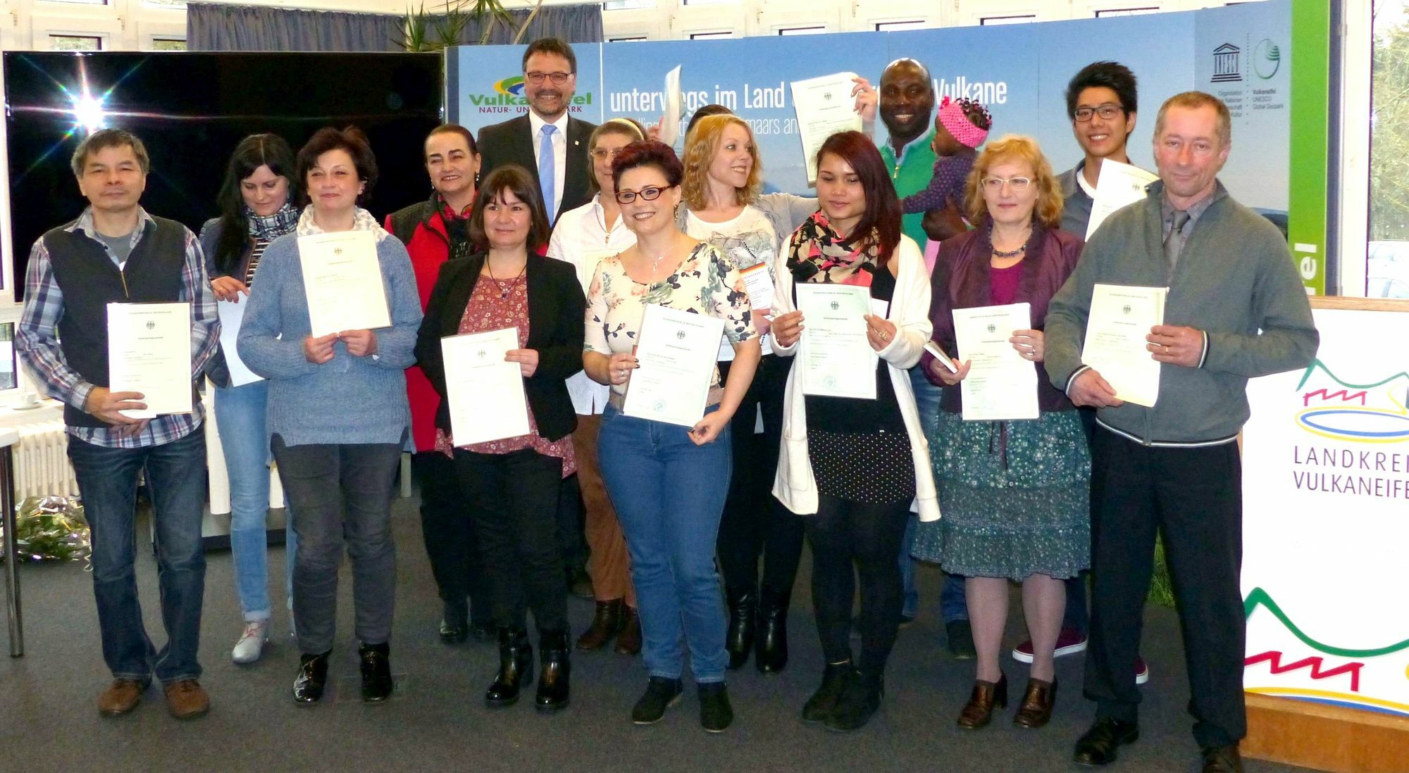 Insgesamt 14 Erwachsene sowie 2 Kinder und Jugendliche aus 13 Nationen erhielten aus den Händen des Landrats ihre Einbürgerungsurkunde. Der Landrat ermutigte die Neubürger, sich mit ihrem Wissen und ihren Erfahrung in der neuen Heimat einzubringen. „Sie als neue deutsche Staatsbürger/innen sind ein Gewinn für unsere Gesellschaft, für unser Land und vor Allem auch für unseren Landkreis Vulkaneifel“, so der Landrat weiter.