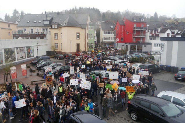 Vergangenen Freitag gingen in mehr als 120 Ländern hunderttausende Schüler und Studenten auf die Straßen, um für eine nachhaltigere Klimaschutzpolitik zu streiken. Eine, der rund 200 Demonstrationen in Deutschland, fand in Daun statt. Laut der Veranstalter der Demonstration, der Schülervertretung des Geschwister-Scholl-Gymnasiums Daun, nahmen insgesamt rund 600 Schüler der verschiedenen Dauner Schulen an der Klimaschutzdemo in der Dauner Innenstadt teil. Tim Neumann, Schülersprecher des Geschwister-Scholl-Gymnasiums, sagte zum Protest in Daun: „Zu der Aktion kam es eigentlich eher spontan. In der Mittagspause kam das Thema auf die weltweiten Klimaproteste im Rahmen der Fridays for Future-Aktion. Einige unserer Mitschüler haben dann auch ihr Interesse bekundet, sich auf der Demo in Trier zu engagieren. Daraus ist dann recht schnell der Entschluss entsprungen, dass es nicht nur im Sinne des Klimaschutzes, sondern auch als Symbol für Zusammenhalt und gesellschaftlichen Engagement in unserer Region sehr lohnenswert sei, eine Demo bei uns in Daun zu veranstalten. Unsere Idee war es, den ersten Schritt in die richtige Richtung zu machen, und diesen dann mit schulinternen Projekten weiterzuführen.“