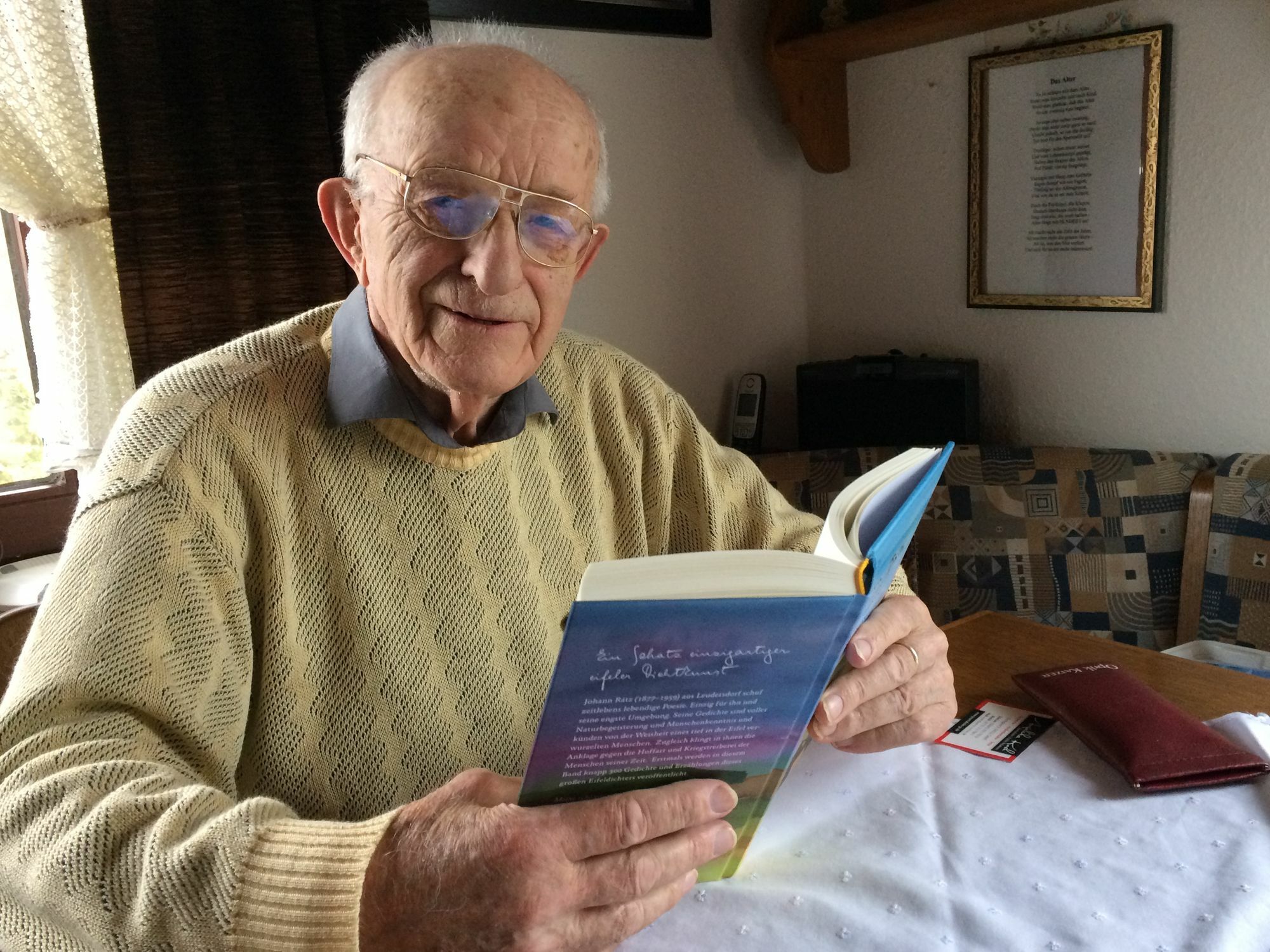 In neunzig Lebensjahren kann viel passieren. Und das ist es auch, bei Nikolaus Rätz. Er gehört zu jener Generation, die in ihrer Jugend Nazizeit und Krieg miterleben musste. Rätz geriet in amerikanische Kriegsgefangenschaft. Nachdem er als 19-Jähriger heim auf den elterlichen Hof nach Leudersdorf kam, machte er eine Entdeckung, die bis heute nachwirkt: die von seinem Vater Johann verfassten Gedichte und Schriftstücke, von denen viele in den Jahren zuvor gefährlich gewesen wären. Denn immer wieder kommt in ihnen zum Ausdruck, wie kritisch der katholisch geprägte Landwirt die Nazis sah. »Ich habe ihn immer als überzeugten Antifaschisten erlebt, aber ich wusste nicht, dass er seine Ablehnung zu Papier gebracht hatte«, erinnert sich Nikolaus Rätz, der seit seiner Heirat 1951 in Loogh lebt. »Meine Geschwister interessierten sich nicht dafür, aber ich, und so holte mein Vater die Hefte, die nur oberflächlich versteckt gewesen waren, hervor und sprach mit mir darüber.« Neu war für den damals jungen Mann nicht nur die Dichtkunst seines Vaters, sondern auch, dass der anfangs durchaus Sympathien für die Nazis gehegt hatte. »Aber deren Politik und den Krieg in der Praxis zu erleben, das hat sein Urteil vollkommen gewandelt.« Schon unmittelbar nach dem Krieg, als noch kaum jemand über die zurückliegenden Jahre sprechen wollte, war für Nikolaus Rätz klar: »Wer behauptet, er habe von nichts gewusst, sagt nicht die Wahrheit. Man wollte höchstens von nichts wissen, aber merken, was geschieht, konnte jeder.« Die aufrechte Haltung gegen die Nazis übernahm er von seinem Vater – und gab sie an seine Kinder und Enkel weiter. »Dass solche demokratiefeindlichen Ansichten noch einmal die Regie übernehmen, glaube ich nicht«, hofft er angesichts der aktuellen Entwicklungen. Gerade jetzt die Gedichte seines Vaters – mit Hilfe des Kulturwissenschaftlers Tim Becker – herauszugeben macht für ihn umso mehr Sinn.