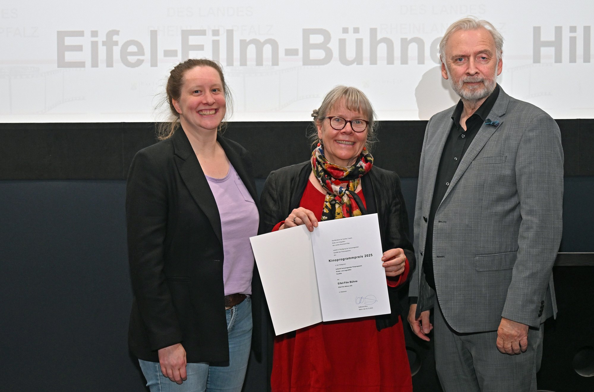 Seit Jahresbeginn wird die Eifel-Film-Bühne in Hillesheim von den beiden Schwestern Hanna und Katharina Runge geführt. Die bisherige Kino-Chefin Christine Runge war allerdings bei der Preisverleihung mit dabei.