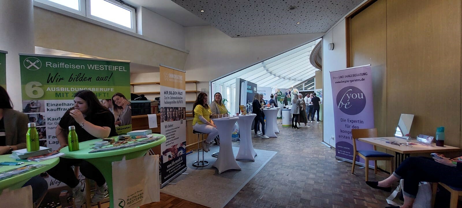 Die Job- und Ausbildungsmesse, die am heutigen Freitag, 8. März, stattfindet, ist offensichtlich ein voller Erfolg. Im Rondell in Gerolstein lässt der Strom der Besucher nicht nach. Wer auf der Suche ist nach einer Stelle, wer den Wiedereinstieg schaffen möchte oder wer gerne wechseln will, der ist hier genau richtig. Und diese Botschaft ist offenbar angekommen: Mehr als 40 Unternehmen und Behörden aus der Region haben ihre Städe aufgebaut. Wo sonst trifft man diese Bandbreite an Unternehmen, die von der Bundespolizei über die Verbandssgemeinde, über Arbeitgeber aus dem Gesundheitswesen, das Handwerk und die Industrie bis hin zu Geldinstituten reicht? Schließlich kann man hier die Personaler von Tesla Automation, Gerolsteiner Brunnen oder anderen hochkarätigen Unternehmen ohne Hürden ansprechen. Die ausstellenden Unternehmen waren begeistert, manche hatten schon nach wenigen Stunden passende Kandidaten für ihre freien Stellen gefunden. Diese Chance, gleich mit künftigen Arbeitgebern ins Gespräch zu kommen, ohne die Hürden eines Bewerbungsschreibens nehmen zu müssen, haben sich auch die Schülerinnen und Schüler aus der Vulkaneifel und aus dem Eifelkreis Bitburg-Prüm nicht entgehen lassen. Zeitlich versetzt sind sie mit Bussen angekommen. Am Ende sind viele zufrieden wieder gegangen, weil sie ihren nächsten Praktikumsplatz gefunden haben. So zeigen sich auch Marco Berndt, Geschäftsführer des Veranstalters Berndt Medien aus Köln, und Andreas Persie vom Kooperationspartner Weiss-Verlag, sowie das Partner-Unternehmen höchst zufrieden: "Wir hätten nicht damit gerechnet. dass so viele Besucher heiute nach Gerolstein kommen würden. Das ist für alle Teilnehmenden ein großer Gewinn", sagt Berndt. Aus Sicht von Heike Görres, Sprecherin der Verbandsgemeinde Gerolstein, zeigt diese Job- und Ausbildungsmesse einmal mehr das Potenzial dieser Region: "Wir haben wirklich tolle Unternehmen hier vor Ort. Bei uns ist in nahezu jedem Ort Home-Office möglich. Und wir bieten eine hohe Lebensqualität." Deshalb sei es klug, dass junge Mneschen hier ihre Karriere starten.