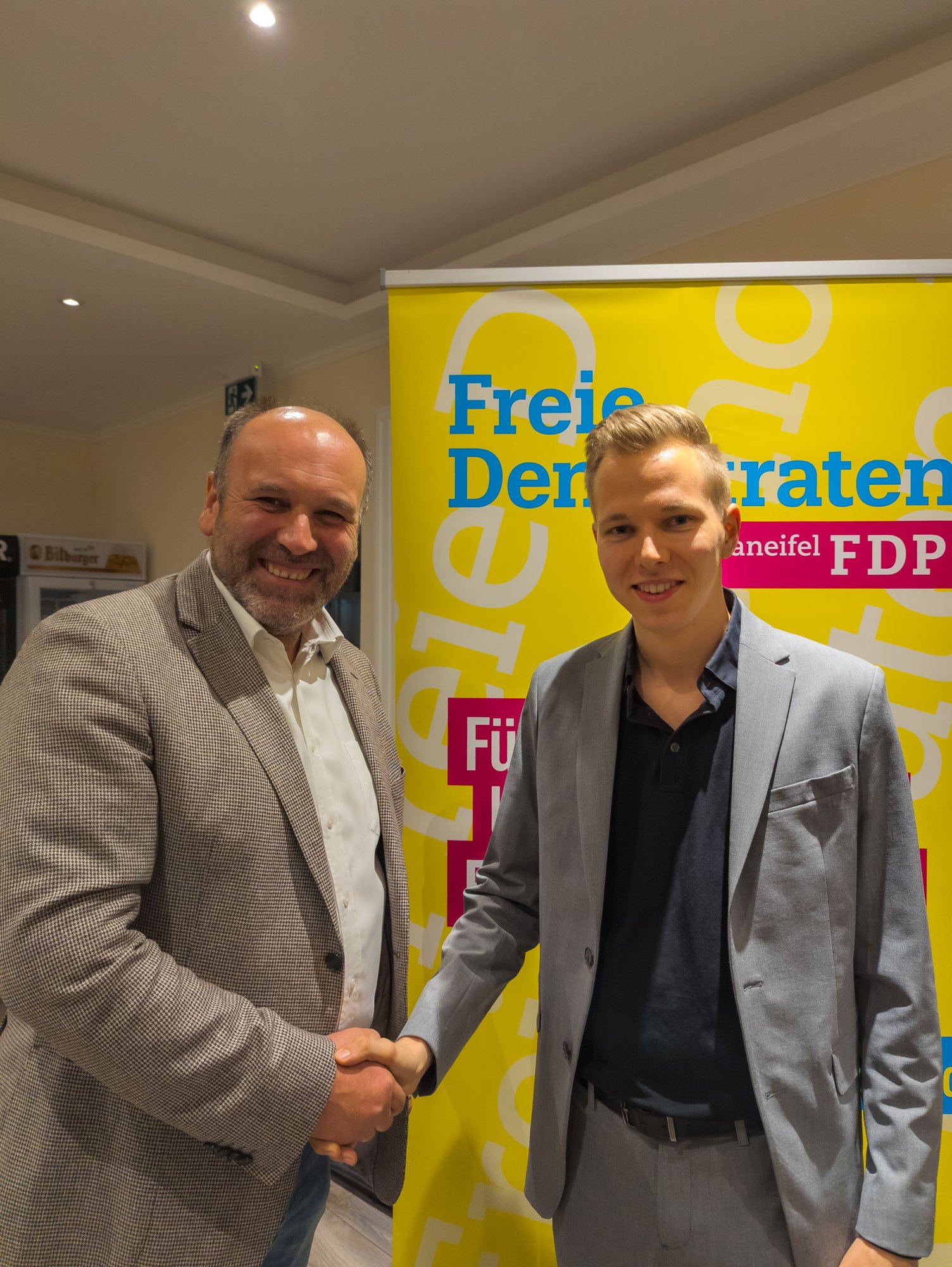 Noah Wand (rechts) tritt die Nachfolge con Marco Weber (links) als Kreisvorsitzender der FDP in der Vulkaneifelan.
