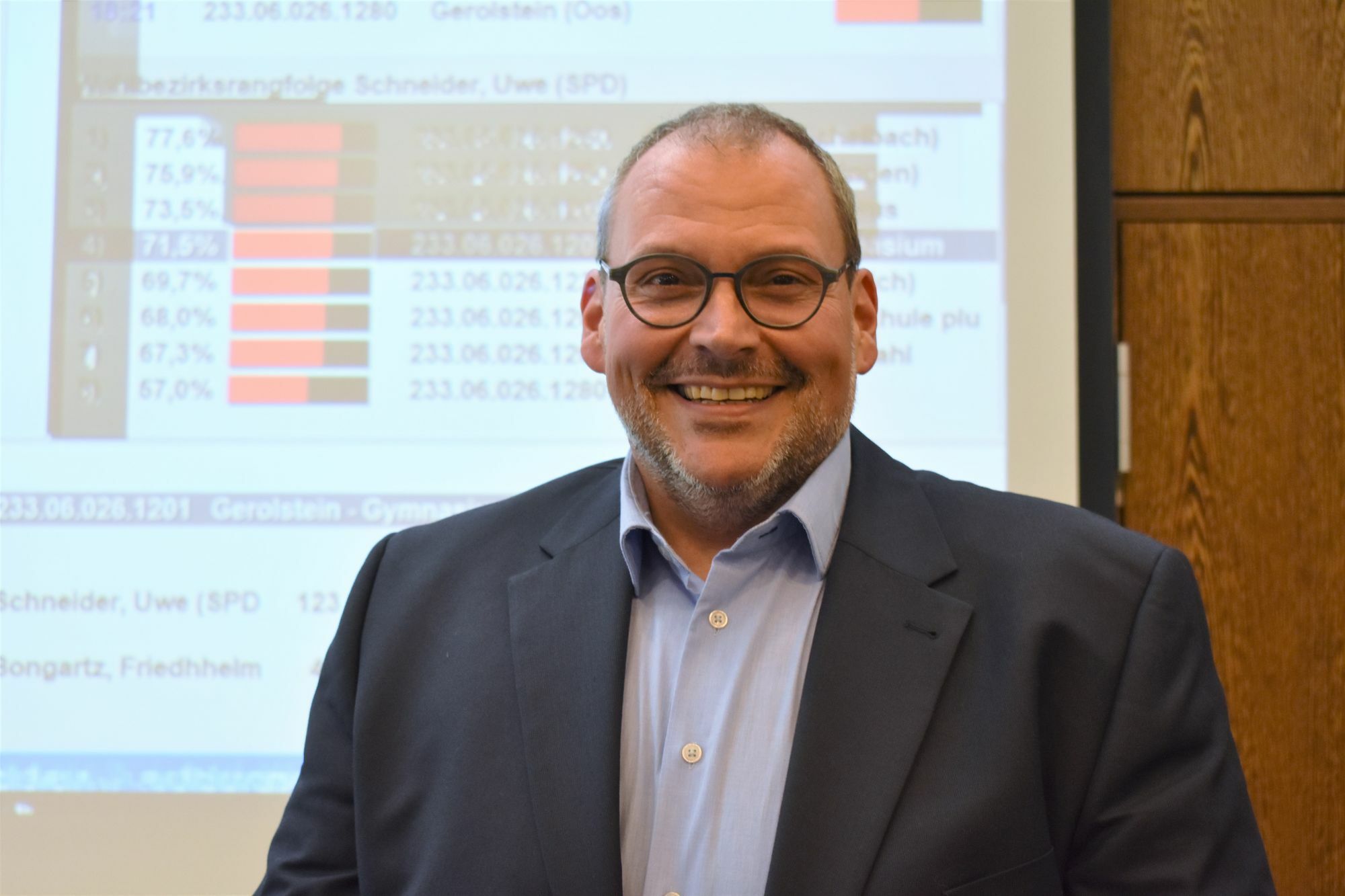 »Wir haben es geschafft!« Das waren die ersten Worte des neu gewählten Gerolsteiner Stadtbürgermeisters Uwe Schneider (SPD), nachdem das Endergebnis der Stichwahl vergangenen Sonntag auf die Leinwand im Sitzungsaal des Gerolsteiner Rathauses geworfen wurde. Schneider kam bei der Wahl auf 64,83 Prozent, Amtsinhaber Friedhelm Bongartz (CDU) auf 35,17 Prozent der Stimmen. Die Wahlbeteiligung lag bei 41,44 Prozent. Bongartz bedankte sich nach der verlorenen Stichwahl für die vergangenen fünf Jahre im Amt und gratulierte Schneider zum Wahlsieg. Er betonte jedoch auch, dass viel anstehe, das gemacht werden müsse in der Zukunft. Auch Schneider bedankte sich in seiner ersten Ansprache als neu gewählter Stadtbürgermeister unter anderem bei Bongartz für die gute Zusammenarbeit im Gerolsteiner Stadtrat in den vergangenen Jahren während Bongartz Amtszeit. Des Weiteren verglich der Wahlgewinner die Brunnenstadt in seiner Rede mit einem Kreuzfahrtschiff, das jetzt bereit sei, loszufahren. »Die Bürger haben ihren Kapitän gewählt«, so Schneider. Nun steuere man Hafen für Hafen an, Projekt für Projekt. Die Priorisierung dieser sei ihm als neuer Stadtbürgermeister besonders wichtig.