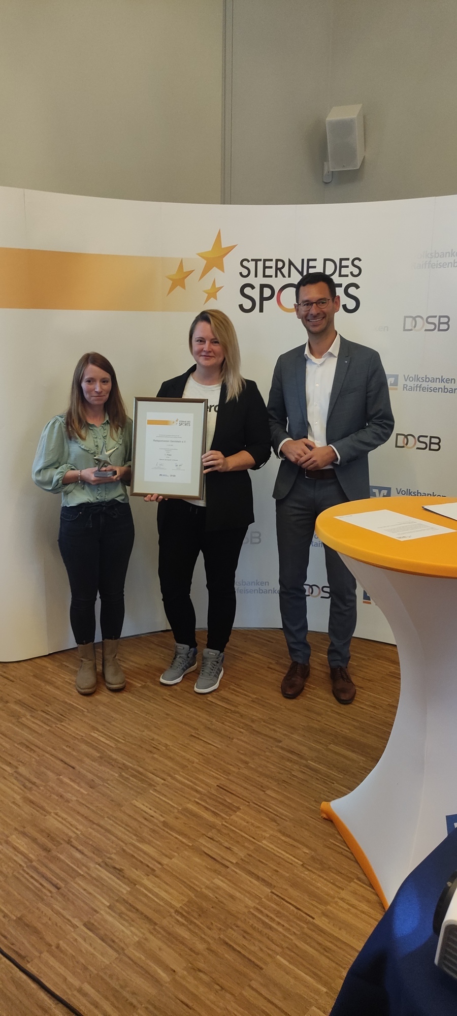 Großer Jubel beim RSV Gerolstein e.V. als sie den "Großen Stern des Sports" in Bronze und das Preisgeld in Höhe von 1.500 Euro aus den Händen von Manfred Heinisch, Vorstand der Raiffeisenbank Westeifel eG und Vertreter der Volksbanken und Raiffeisenbanken im Eifelkreis Bitburg-Prüm und dem Vulkaneifelkreis in einer Feierstunde im Lokschuppen Gerolstein erhielten.