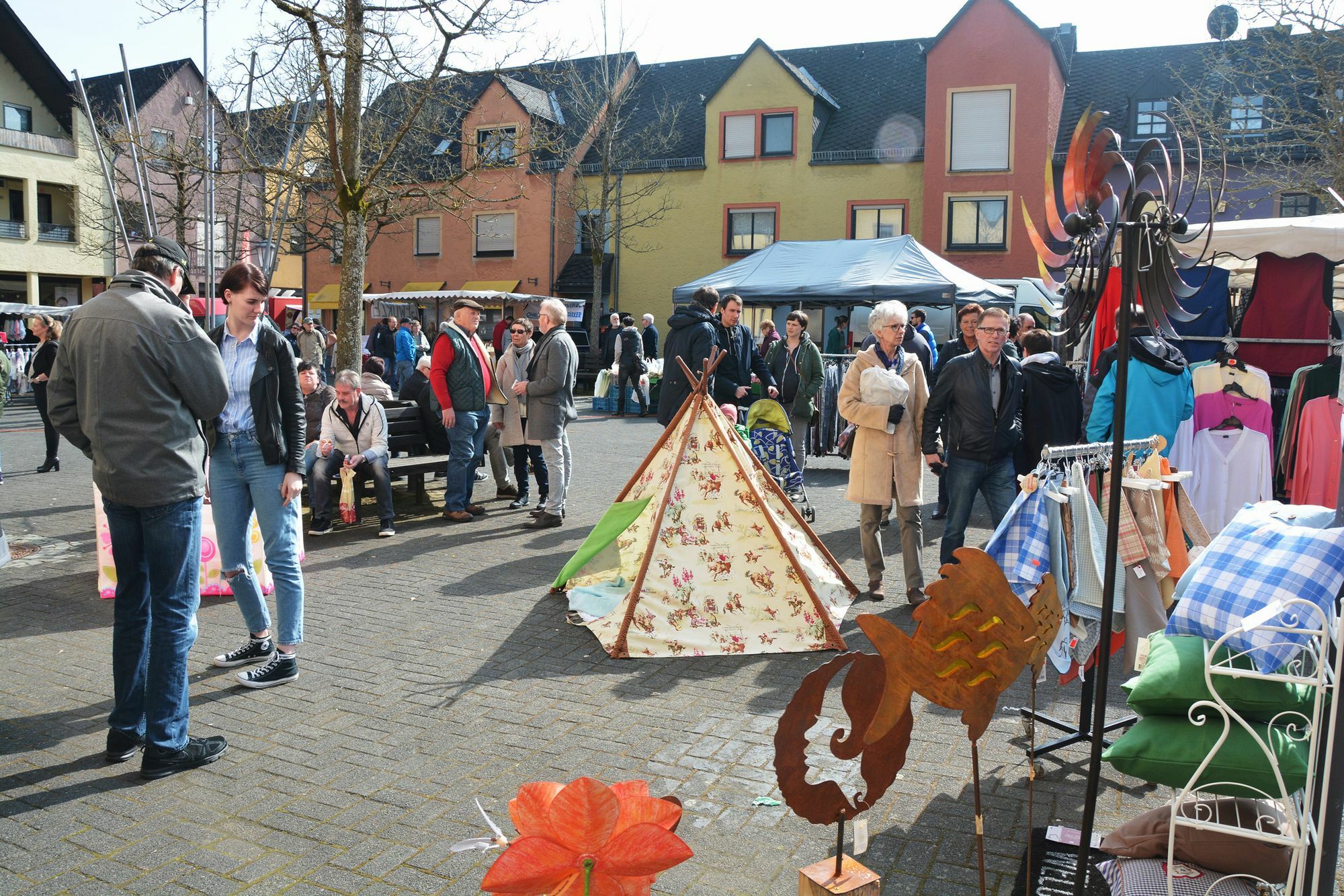 Fünf Stunden Muße zum Flanieren durch die Altstadtgassen der Marktstadt: Am Palmsonntag erwischte die Werbegemeinschaft Marktort Hillesheim bestes Wetter: angenehme Temperaturen, dazu ein freundlich gesinnter Himmel. Es war ein perfekter Einkaufssonntag, den die Besucher gern annahmen. Ein großes Angebot - von Büchern, Kunst und Deko über Elektro- und Haushaltswaren, Kleidung und Schmuck, Spielsachen und Werkzeug bis zu Reiseangeboten - sowie attraktive Aktionen und Überraschungen erhöhten die Kauflaune. Auf dem Krammarkt gab es Kleidung, Schmuck Obst und allerlei anderes was zum Frühling gehört, aber auch Unterhaltung sorgte für Abwechslung am Verkaufsoffenen Sonntag: Im Studio B & C fand die Vernissage der Ausstellung »Drei Welten« statt. In der Grundschule stellten die »Goßbergfalken« aus Walsdorf ihre kunstvoll gebauten Modellflugzeuge vor.