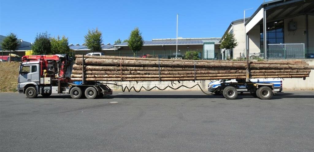 Beamten der Schwerlastkontrollgruppe des Polizeipräsidiums Trier stoppten am Dienstag, 6. September, auf der B-51 bei Olzheim einen deutschen Langholztransport, welcher mit Fichtenstämmen beladen war. Der Holztransport war auf dem Weg von Phillipsheim (Landkreis Bitburg-Prüm) zu einem Sägewerk in Stadtkyll (Landkreis Vulkaneifel). Im Rahmen der Kontrolle erhärtete sich der Verdacht, dass der Langholztransport deutlich überladen sein könnte. Bei einer Verwiegung mit einer polizeieigenen Waage wurde ein Gesamtgewicht von 51,5 Tonnen, fast 30% Überladung, festgestellt. Dies trotz der länger anhaltenden Trockenheit auch in den Wäldern. Die Weiterfahrt wurde umgehend untersagt und nachdem der Fahrer einen Teil der Fichtenstämme an geeigneter Örtlichkeit abgeladen hat, konnte er seine Fahrt zum Sägewerk fortsetzen.