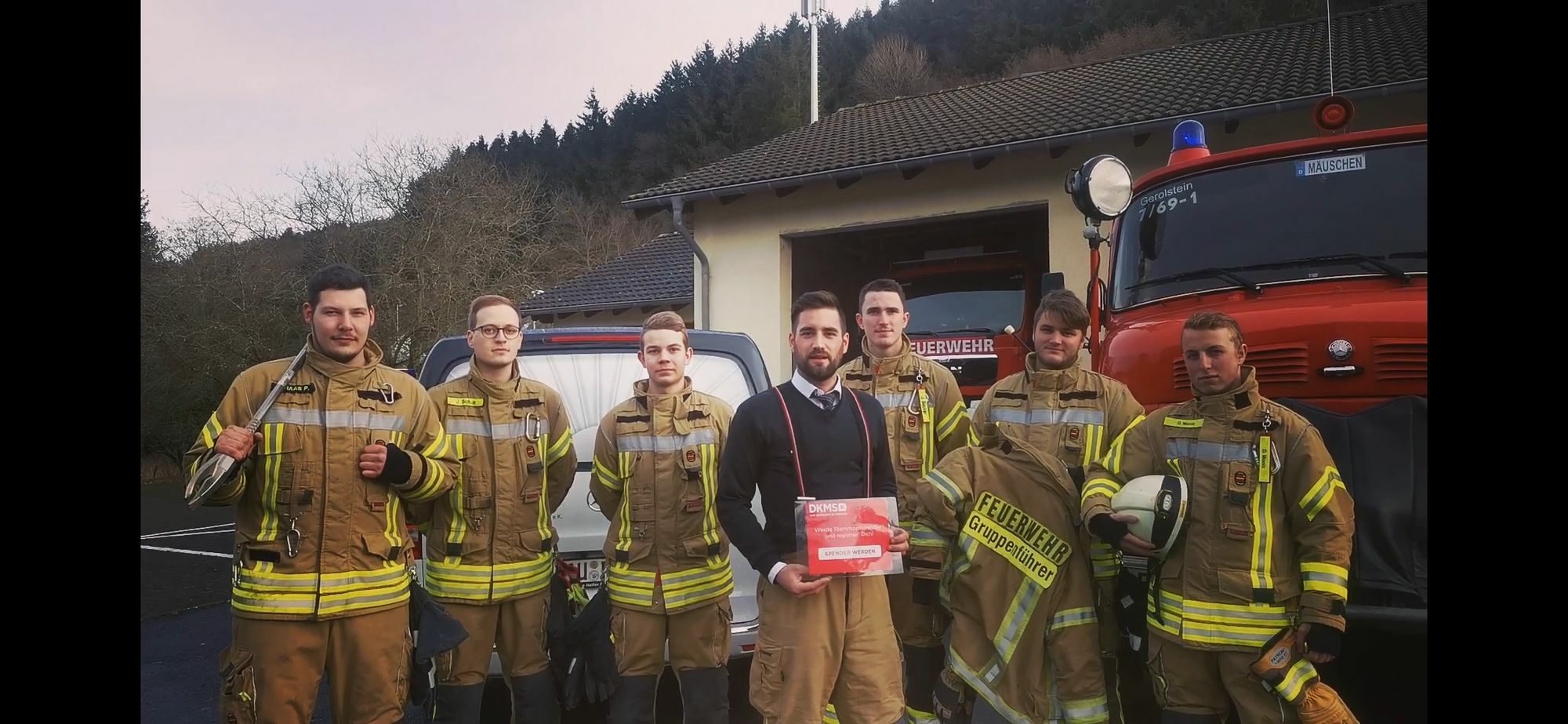 Gemeinsam mit seinen Kollegen der FFW Birresborn drehte Philipp Sonnen (m.) das Video für die Aktion »Bestatter helfen«. Foto: privat