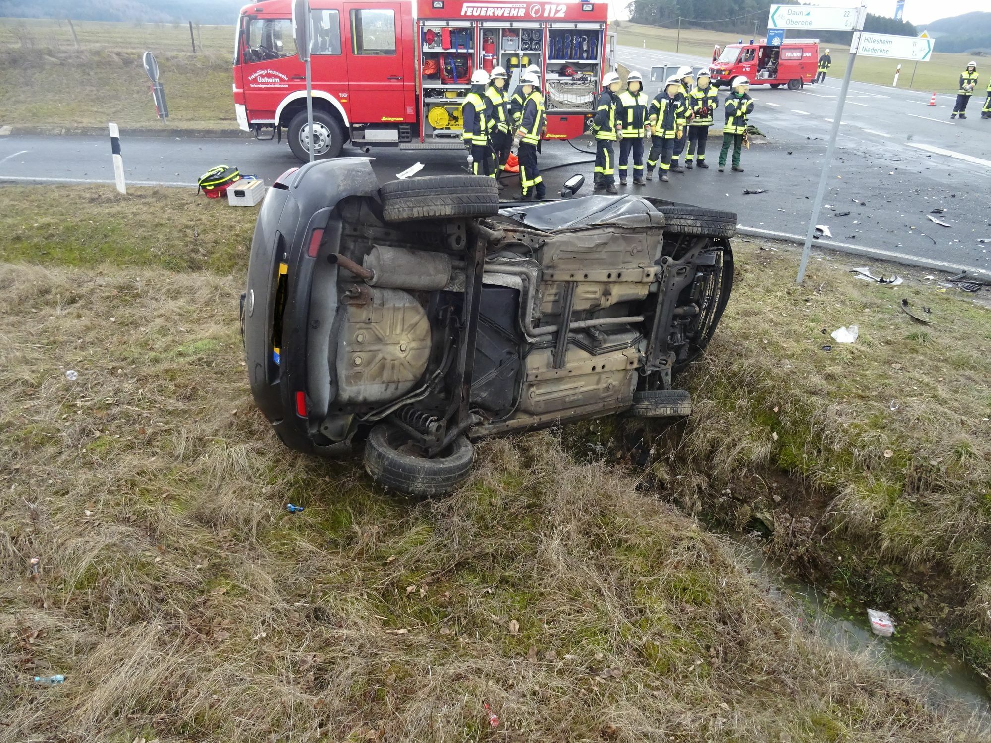 Am Freitag, 22. Februar, gegen 13.25 Uhr, kam es an der Kreuzung L68/K59 bei Niederehe zu einem Zusammenstoß zweier Autos. Ein niederländischer 55-jähriger Fahrer befuhr die K59 aus Richtung Niederehe kommend und missachtete die Vorfahrt eines auf der L68 aus Richtung Stroheich kommenden 32-jährigen Fahrers aus der VGerbandsgemeinde Gerolstein. Durch die Wucht des Aufpralls wurde das niederländische PFahrzeug von der Fahrbahn geschleudert. Die Insassen dieses Autos wurden schwer verletzt in ein Krankenhaus verbracht. Der 32-jährige Fahrer, sowie sein zweieinhalb jähriger Beifahrer, wurden leicht verletzt und ebenfalls in ein Krankenhaus eingeliefert. Im Einsatz befanden sich neben der Polizei Daun mehrere Rettungs- und Notarztwagen, sowie 30 Feuerwehrleute.