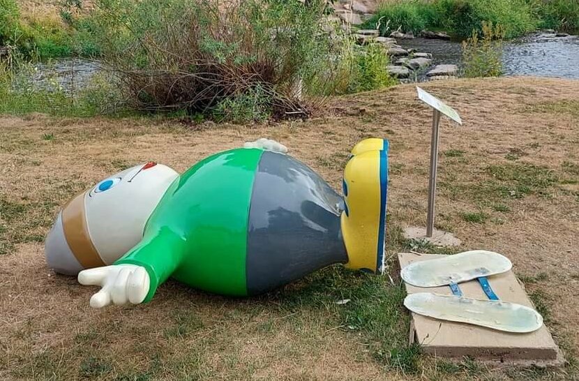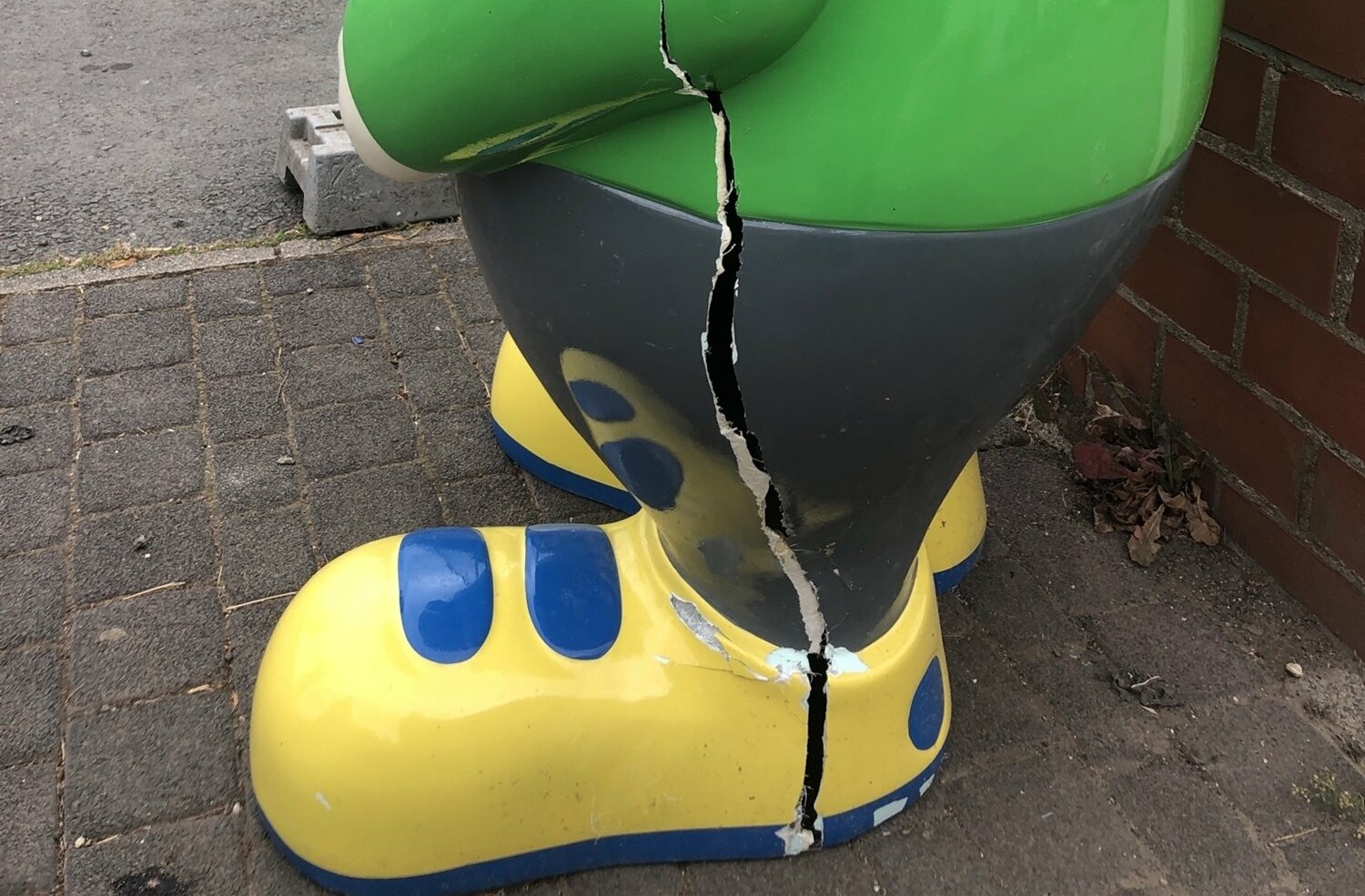 Eigentlich war es im vergangenen Jahr eine schöne Idee der Gerolsteiner Land Touristik GmbH, Willi Basalt einen frischen Look zu verpassen und das langjährige Maskottchen der Region im August an 13 verschiedenen Orten als große Figuren aufzustellen. Allerdings ist der gutmütige Willi wohl auch ein wehrloses Opfer jener feigen Individuen, die sich nicht nur an kleineren, sondern zudem noch an leblosen Männchen vergreifen. Im Januar verschwand eine der Figuren von ihrem Standort am Spielplatz in Pelm. Im Mai wurden ein Schuh der augenscheinlich schwer beschädigten Figur in Gerolstein auf dem Grund der Kyll gesichtet. Nun hat es den nächsten Willi Basalt erwischt. Am Samstag oder Sonntag wurde die im Kyllpark in Gerolstein stehende Figur mutwillig zerstört. Ein breiter Riss zieht sich an Willis linker Seite von der Schuhsohle bis zum Ellbogen. Laut Polizei entstand ein Schaden von etwa 2.000 Euro. Die Polizei in Gerolstein bittet um Hinweise zur Tat oder den möglichen Tätern unter Tel. 06591/95260.