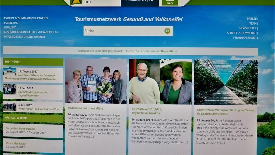 Seit Montag ist es am Start, das neue Tourismusnetzwerk des GesundLand Vulkaneifel. Es ist vornehmlich auf die Kommunikation mit Partnern ausgericht. Pressevertreter, Leistungsträger, Gastgeber und andere Partner finden unter www.gesundland.tourismusnetzwerk.info interessante Neuigkeiten aus der Region, wichtige Termine, eine Übersicht aller Ansprechpartner, eine Darstellung der Genossenschaftsbetriebe und vieles mehr. Beiträge können als wöchentlicher Newsletter abonniert werden.