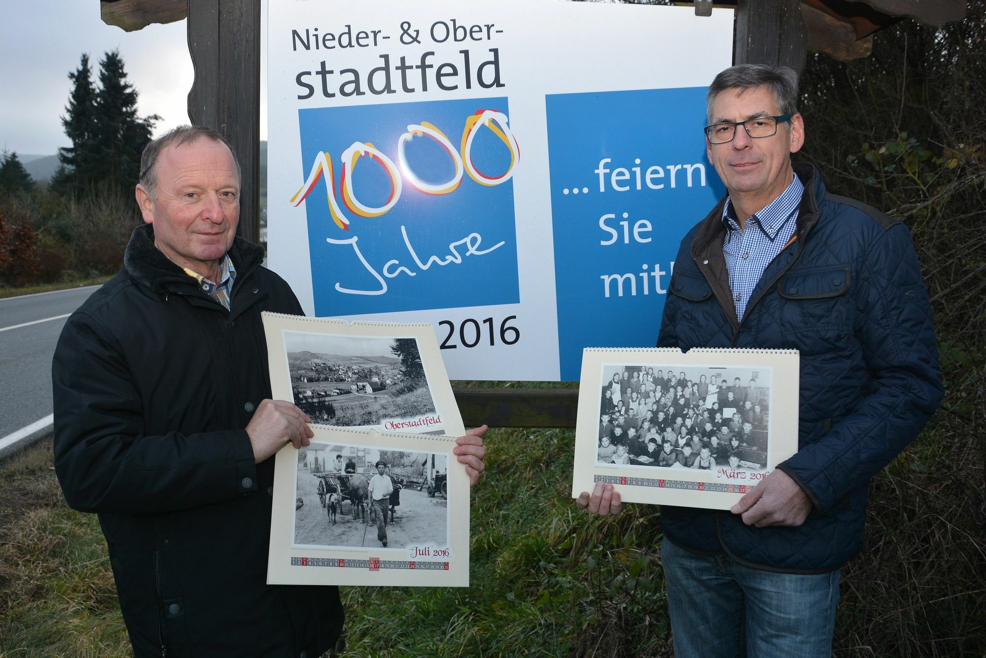 Bereits jetzt konnten die Oberstadtfelder ihren Kalender 2016 zum historischen Fest präsentieren. Er zeigt 18 Fotos, unter anderem Personen, Gebäude und sehenswerte Dorfansichten. »Rund 60 Bilder von über 1000 Fotos waren in der engeren Wahl und mussten dann ausgesucht werden. Auch den Januar 2017 haben wir noch dazu genommen, um noch ein paar mehr verwenden zu können«, erzählt Erich Willems, Hauptorganisator der Bildersammlung und zuständig für den Kalender. Das älteste Foto stammt aus dem Jahr 1900 und zeigt die alte Scheune von Johann Billen »Auf der Gass«, die 1902 abgebrannt ist. Der Kalender mit einem Preis von zwölf Euro im Format DIN A3 ist in einer Auflage von 250 Stück gedruckt worden. Inzwischen sind schon über 200 davon verkauft, wie Willems stolz erzählt.