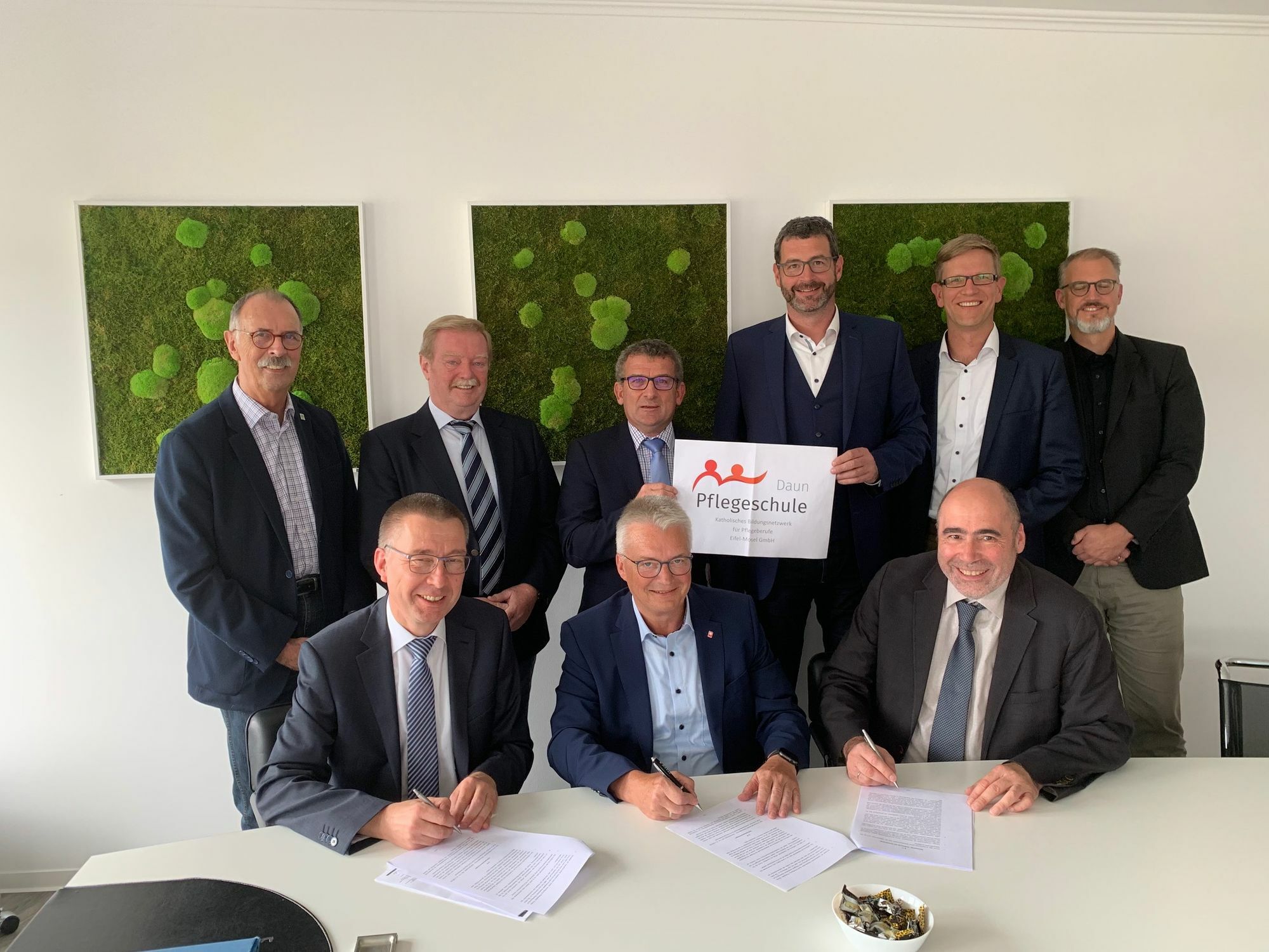 Die Pflegeschule Daun wird in eine neue zukunftsorientierte Trägerschaft übergeleitet. Die bisherigen Träger der Pflegeschulen Maria Hilf, die Krankenhaus Maria Hilf GmbH und die Gesellschaft der Katharinenschwestern mbH, gründeten am 20. August gemeinsam mit der St. Raphael Alten- und Behindertenhilfe GmbH, dem Caritasverband Westeifel und dem Caritasverband Mosel-Eifel-Hunsrück das »Katholische Bildungsnetzwerk für Pflegeberufe Eifel-Mosel GmbH«. Die langjährige erfolgreiche Zusammenarbeit der Pflegeschulen Maria Hilf mit ihren über 50 Kooperationspartnern in der Region soll nicht nur fortgesetzt, sondern noch intensiviert werden. So wird als nächster Schritt am 16. September ein Ausbildungsverbund für Pflegeberufe für die Eifel-Mosel-Region gebildet.