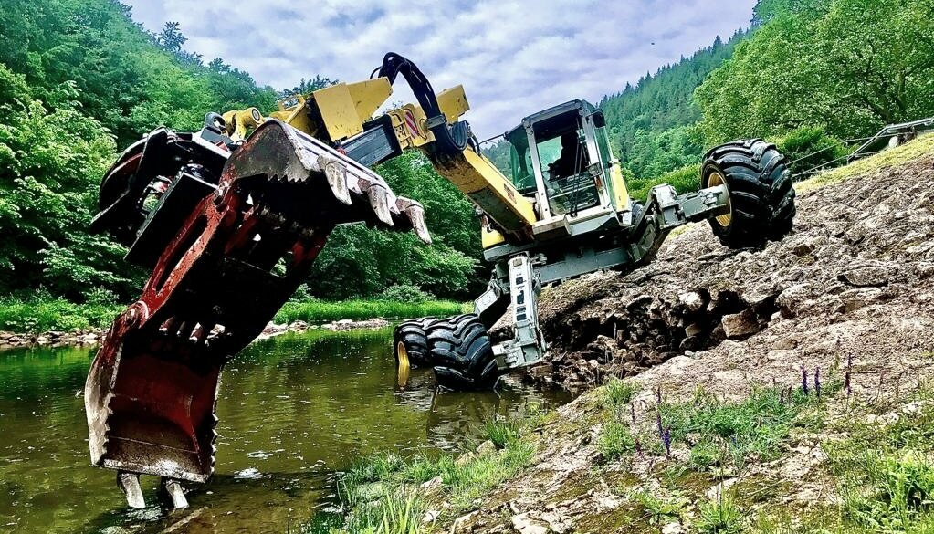 Außerdem wurden andere Anlieger und Nutzer der Kyll, wie der Landesbetrieb Mobilität (Straßenbrücken), die Deutsche Bahn (Bahnbrücken) und Energieversorger (Leitungen durch die Kyll) über Schäden an ihren Anlagen informiert. In Absprache mit der Naturschutzbehörde begannen die Arbeiten an der Kyll zwischen Densborn und Oberbettingen im März. Mit einem sogenannten Schreitbagger der Firma Peter Richarts aus Schwarzenborn, der seine vier Räder an einer Art Beine unabhängig voneinander bewegen kann, wurden Hunderte Kubikmeter Treibgut aus der Kyll und dem Uferbereich entfernt. Zusätzlich wurde viel Abfall von Hand eingesammelt. An den Ufern wurden Bäume abgeschnitten, die nicht mehr fest im Untergrund verwurzelt waren. Zwischen Stadtkyll und Oberbettingen war das Lohnunternehmen Krämer aus Lissendorf mit schwerem Gerät im Einsatz. Viele Tonnen Holz, Treibgut und Müll hatten sich besonders im Bereich Gönnersdorf angesammelt. Auch hier ist der freie Durchfluss der Kyll laut Kreisverwaltung wiederhergestellt.