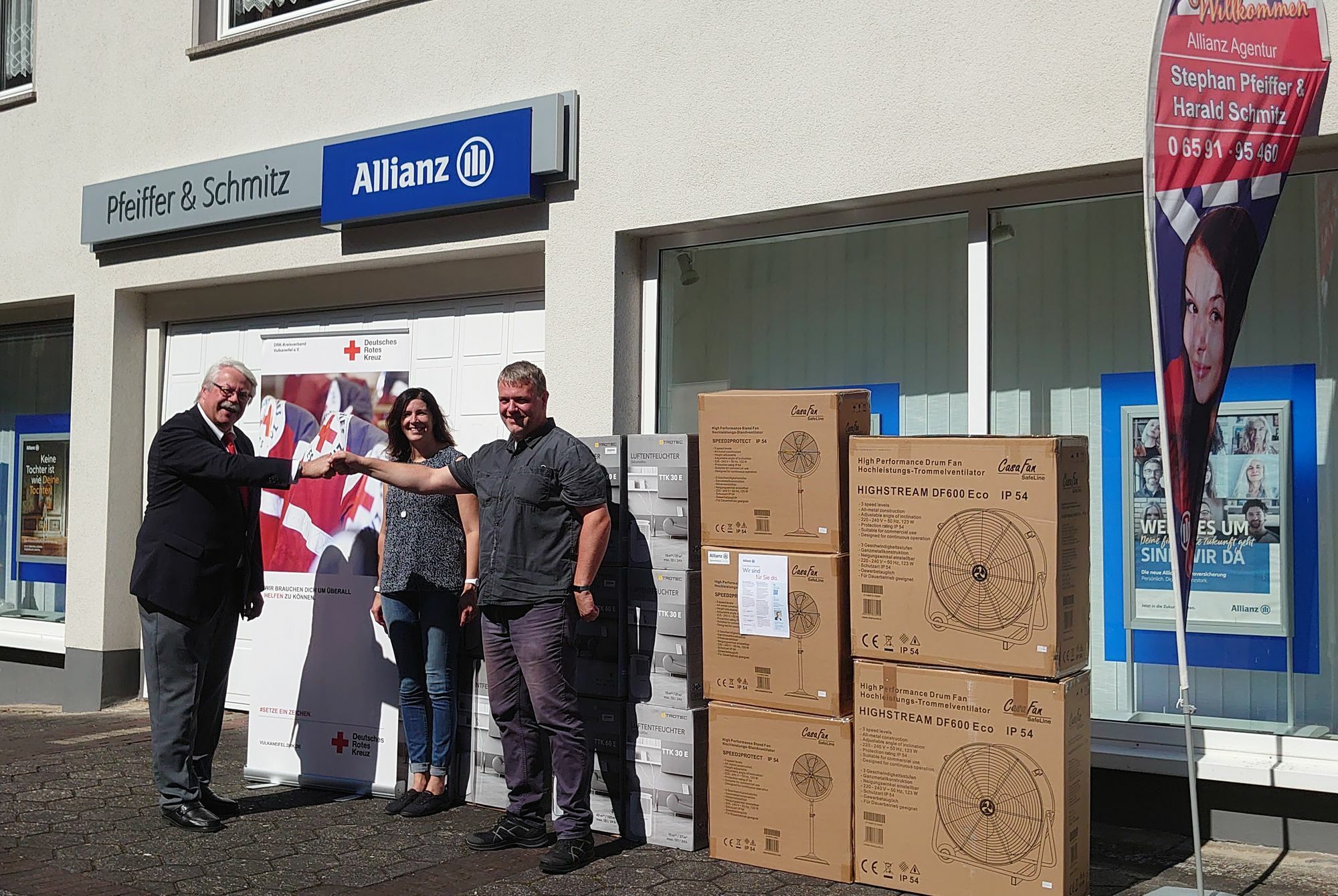 Nach intensiven Bemühungen, dank der Unterstützung der Allianz Versicherung, können wir alle uns überlassenen Trocknungsgeräte den vom Hochwasser betroffenen Haushalten zur Verfügung stellen. Natürlich ebenfalls kostenfrei. Das Angebot richtet sich ausschließlich an Flutopfer, bei denen kein Dritter für Erstattungen aufkommt. „Wir danken der Allianz Deutschland und der Generalagentur Pfeiffer ganz herzlich für die dringend benötigte Hilfe“, so der stellv. Präsident des DRK-Kreisverbandes Vulkaneifel e.V., Dieter Demoulin. “Wir werden dafür sorgen, dass die Geräte genau da ankommen, wo sie gebraucht werden. Sie können ab sofort bei uns abgeholt werden.“ Wichtig: Die Abholung erfolgt im DRK-Standort Gerolstein nur nach vorheriger telefonischer Terminvereinbarung beim DRK-Kreisverband Vulkaneifel e.V. (Teleon 0 6592 / 9 50 00 oder E-Mail: info@vulkaneifel.drk.de).