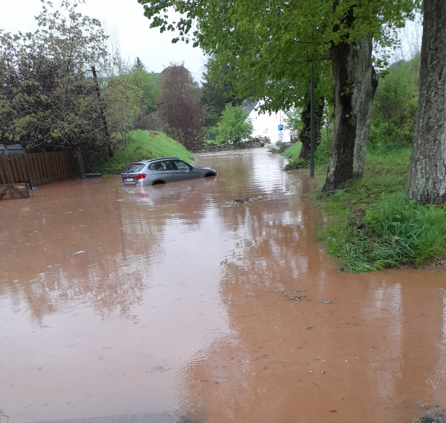 Ob Menschen evakuiert werden mussten? »Die Menschen kamen von alleine aus ihren Häusern raus. Das einzige Problem war, dass wir einen Mann aus seinem Auto retten mussten«, berichtet Klinkhammer. Dieser sei mit seinem Auto losgefahren, um Sandsäcke zu besorgen. Das Wasser sei aber innerhalb einer Viertelstunde dermaßen angestiegen, dass er es nicht mehr zum Haus zurück geschafft habe. »Er steckte in den Wassermassen fest. Deshalb musste er von der Feuerwehr aus seinem Auto geholt werden.« Es seien einige Fahrzeuge betroffen, die im Ort gestanden haben während des Unwetters.